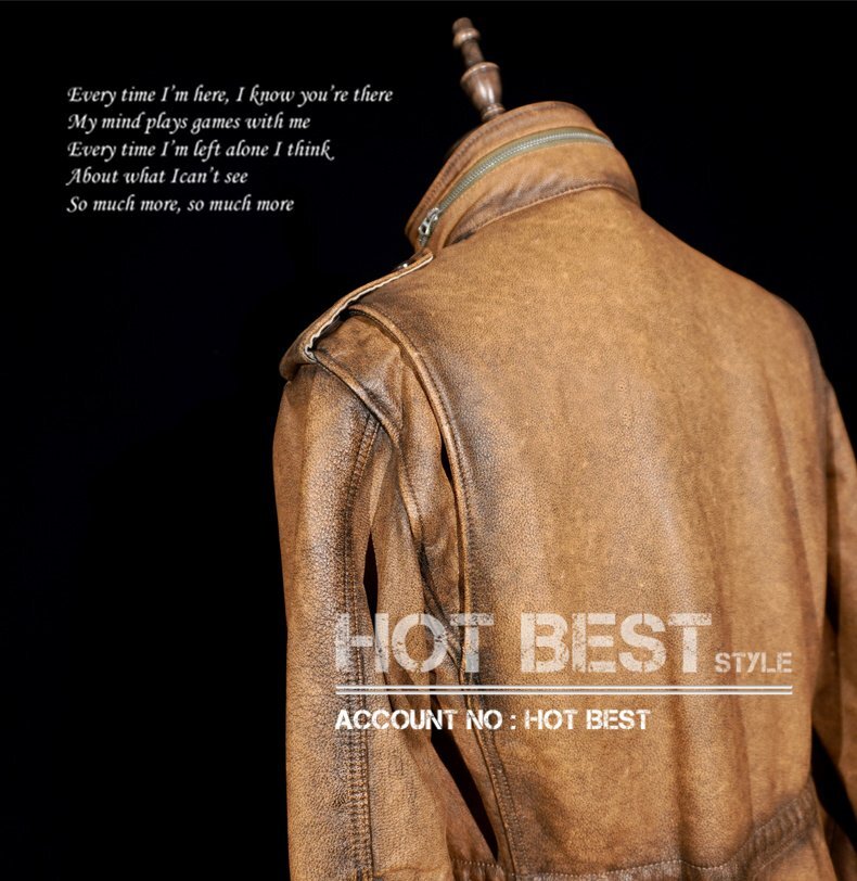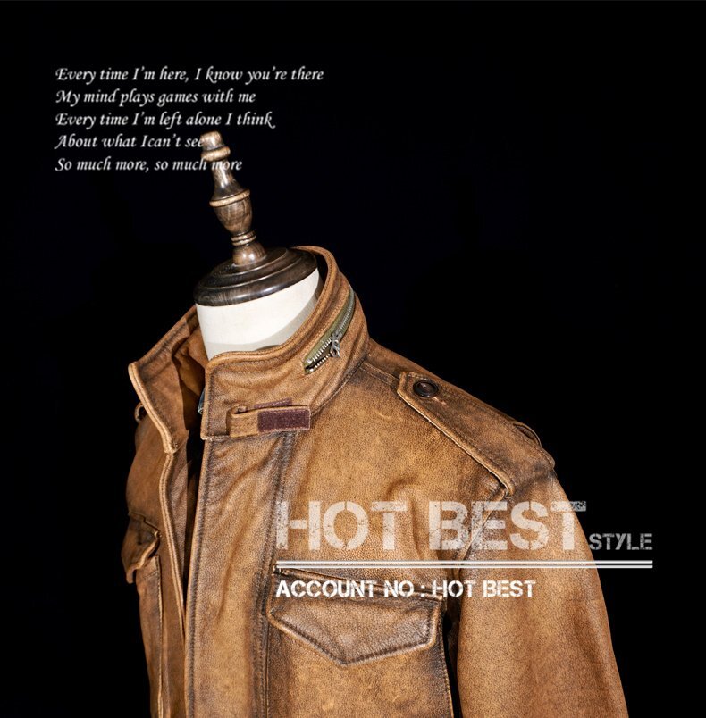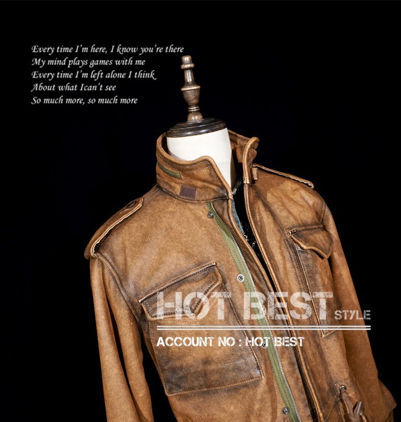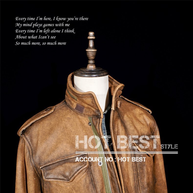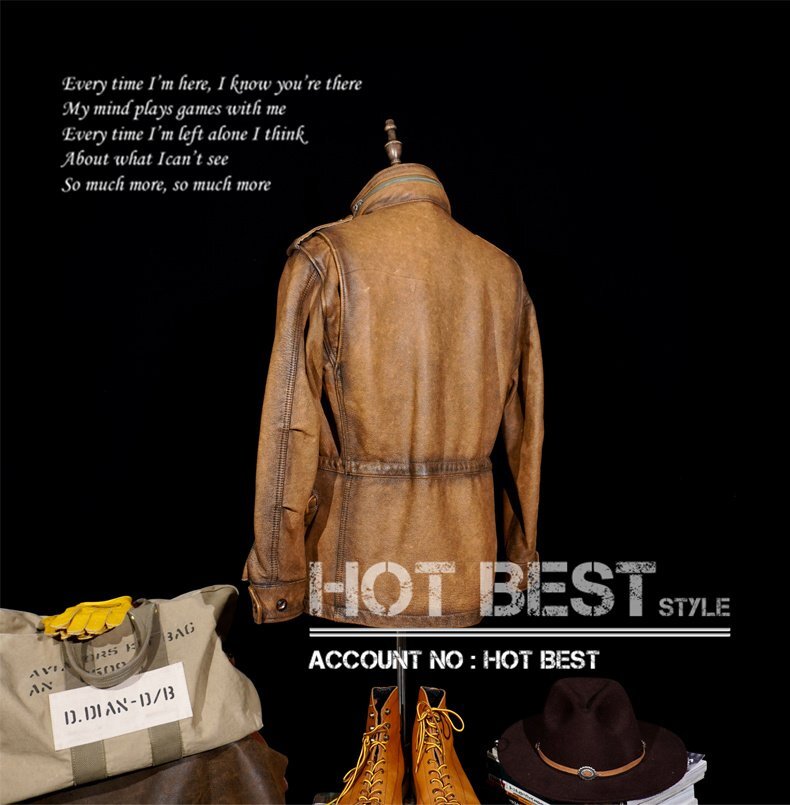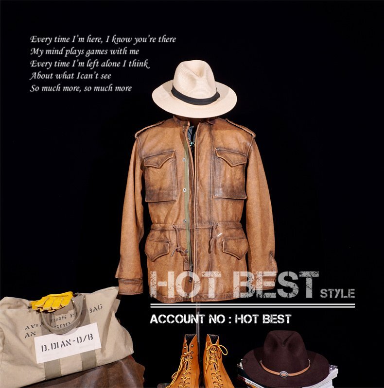 1.3mmカウハイド 復刻50'スタイル M65 ウォッシュ加工 ヴィンテージ メンズ 革ジャン サファリジャケット イタリアンレザー 牛革 Y1416/XL