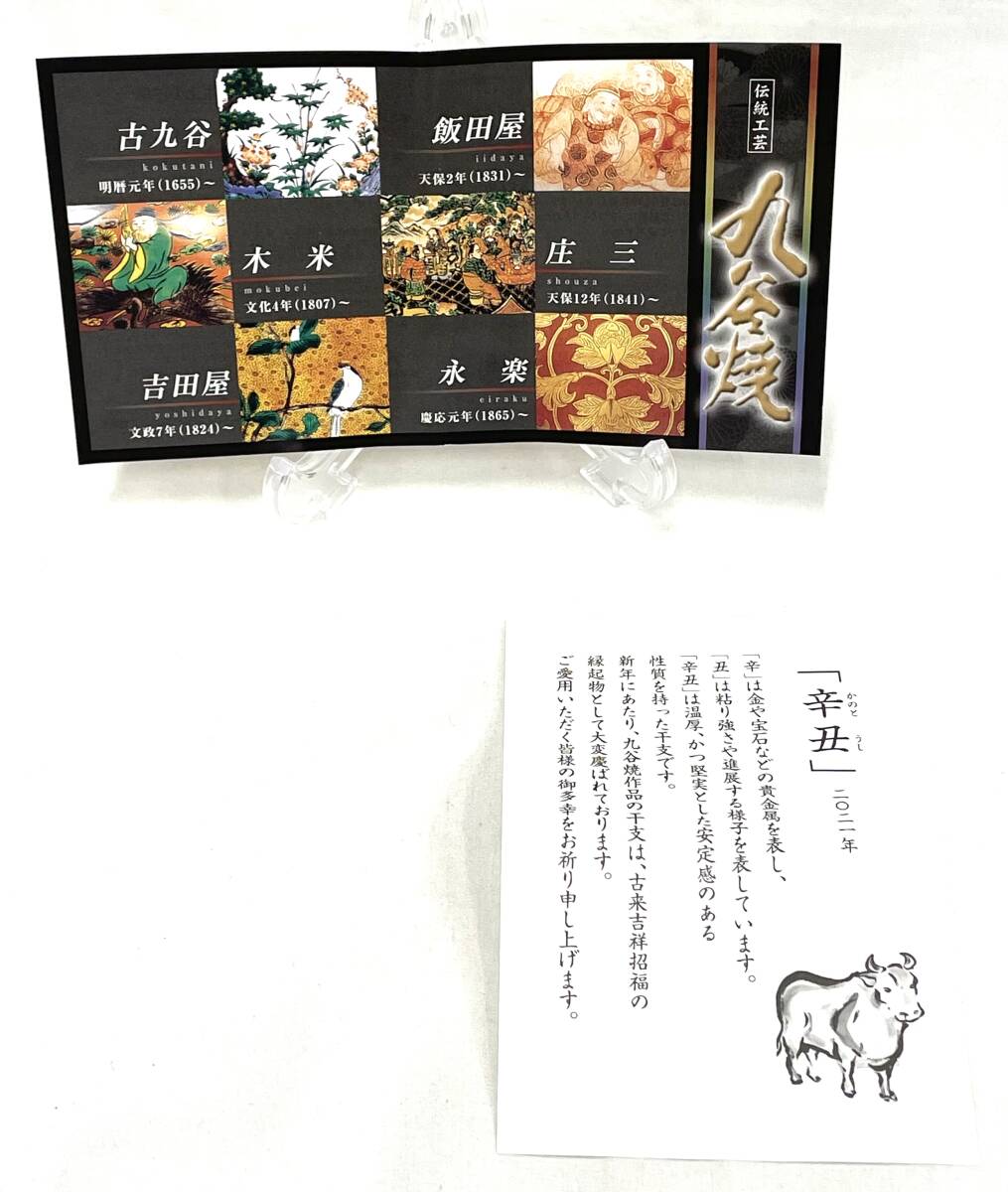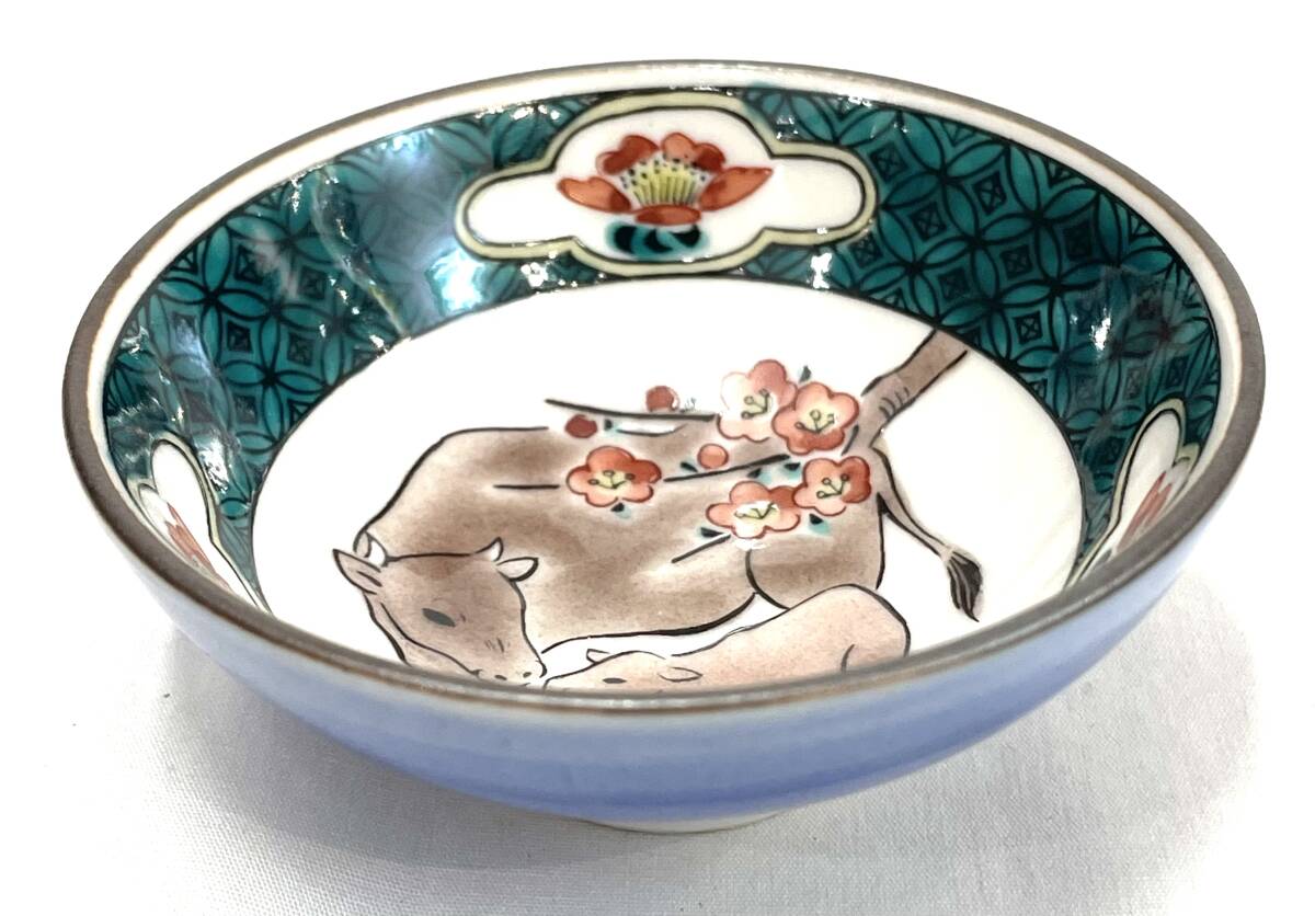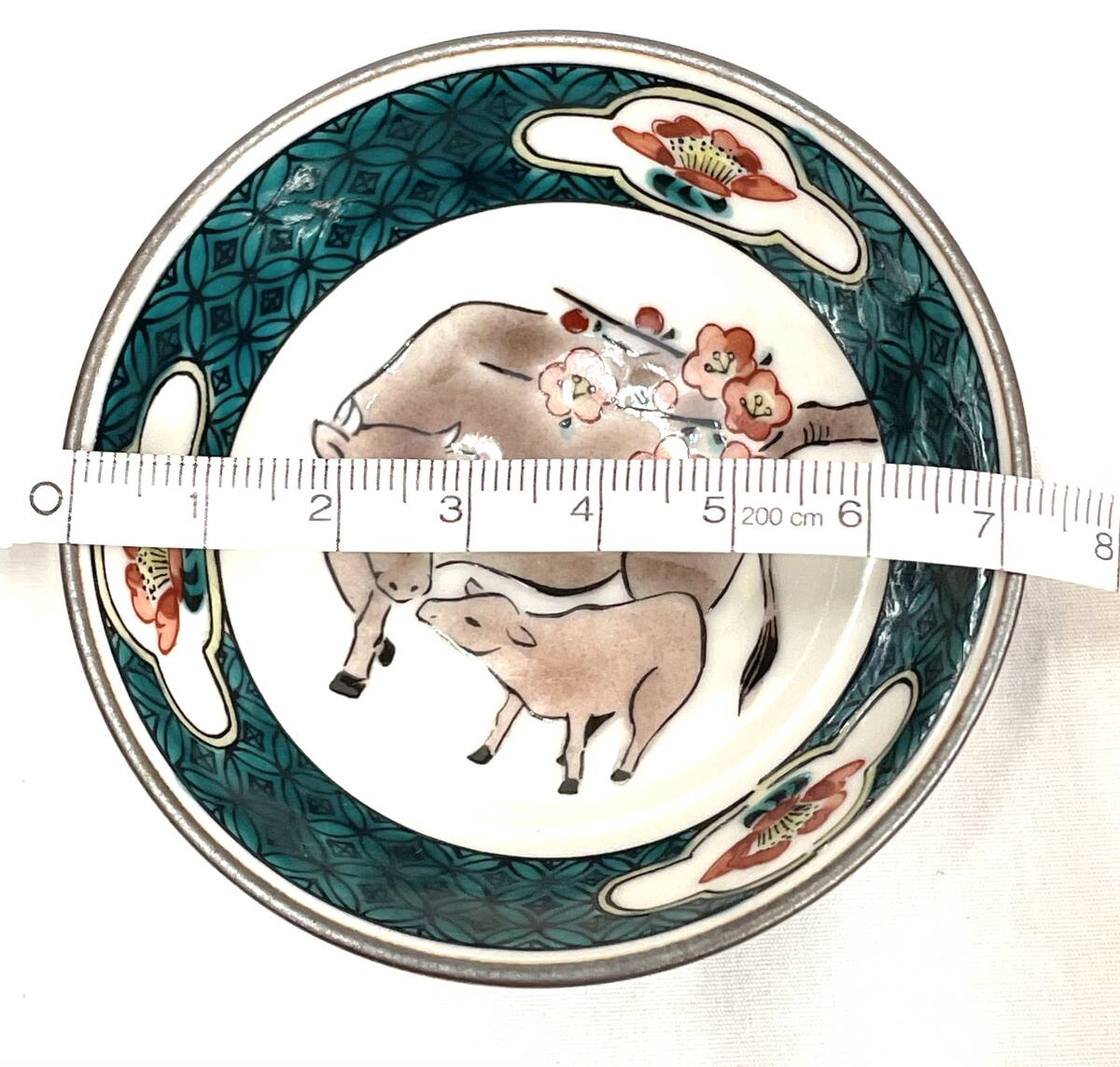 【B】【18070】★☆九谷焼 盃 梅に親子丑 辛丑 伝統工芸 色絵 陶器 箱付き 直径約7.3㎝ 九谷美山 現状品☆★ | ||