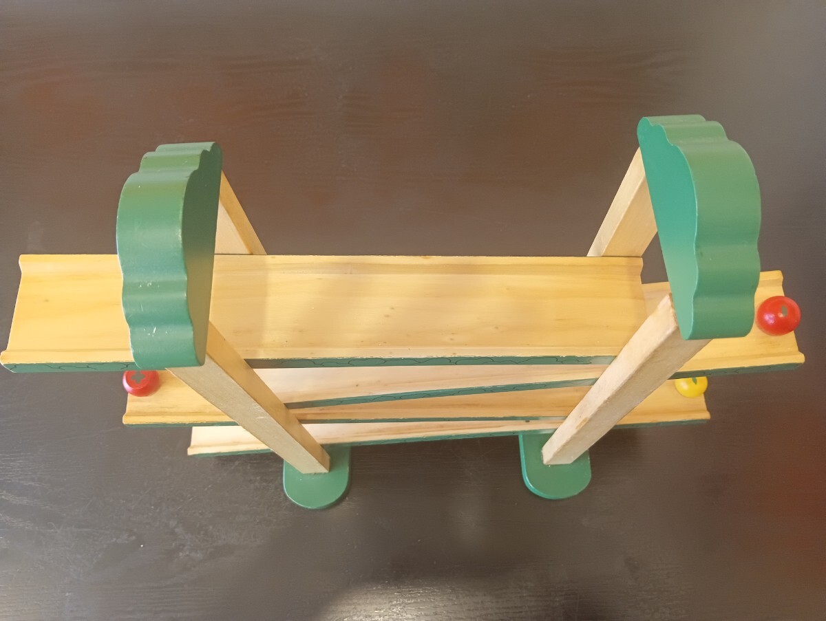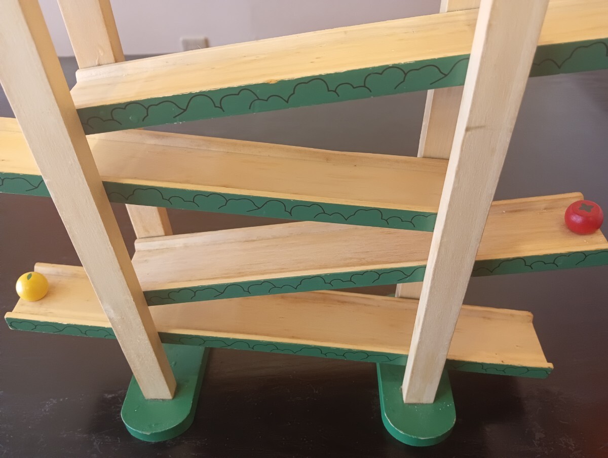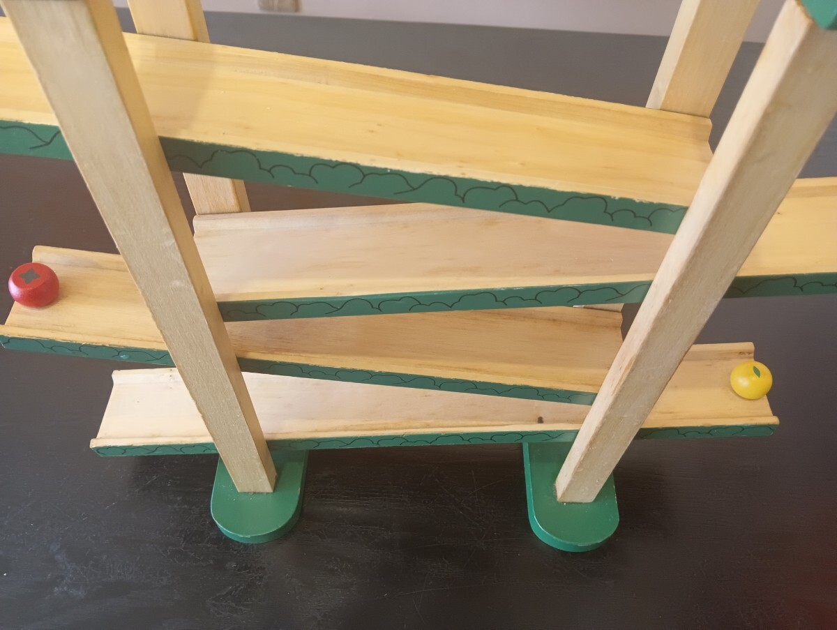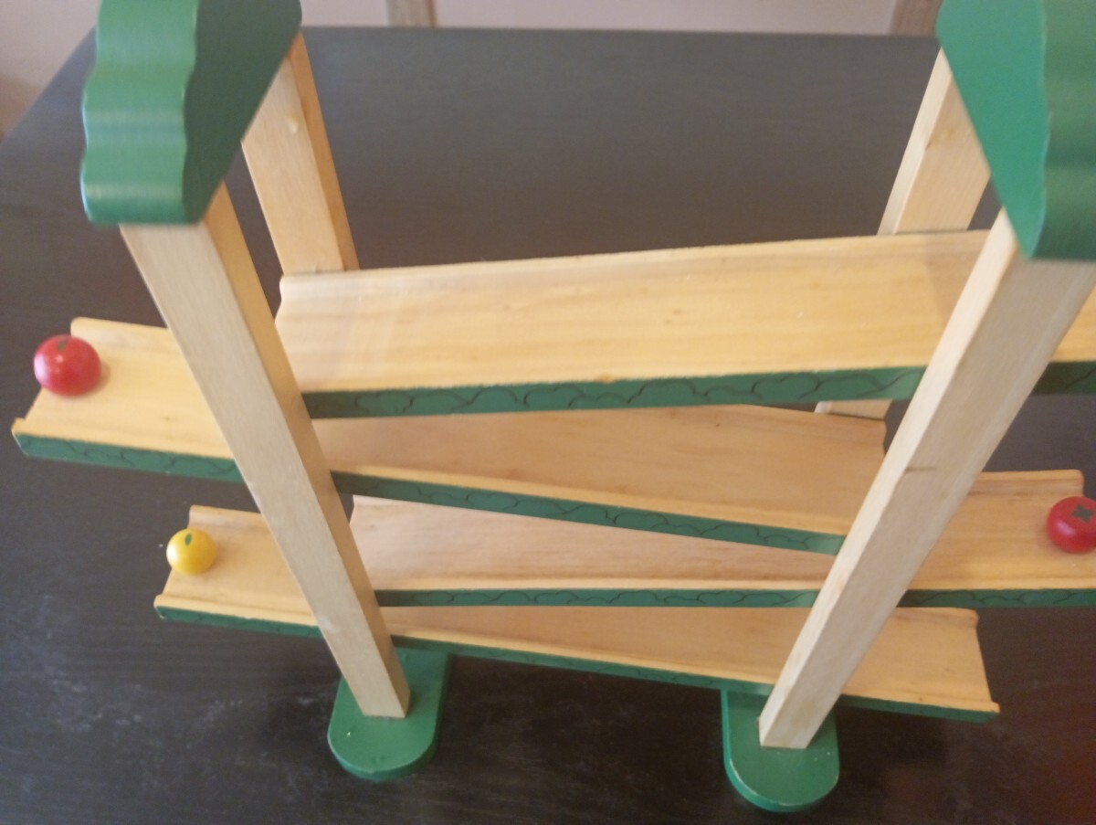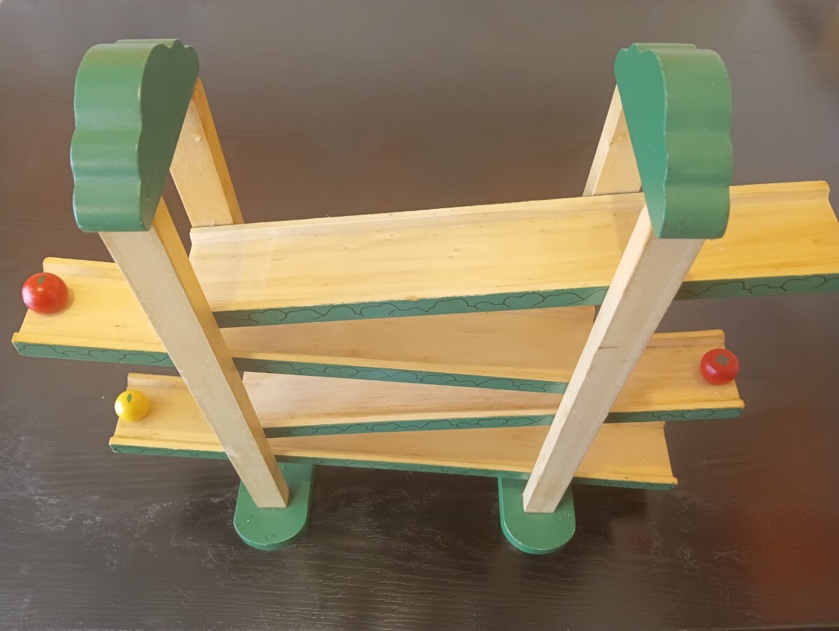 木製の車がカタンカタンと下まで走るおもちゃです。