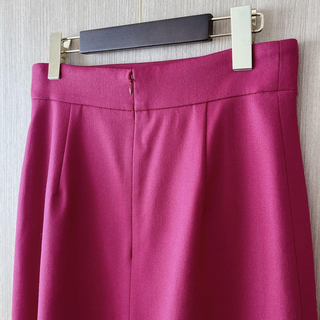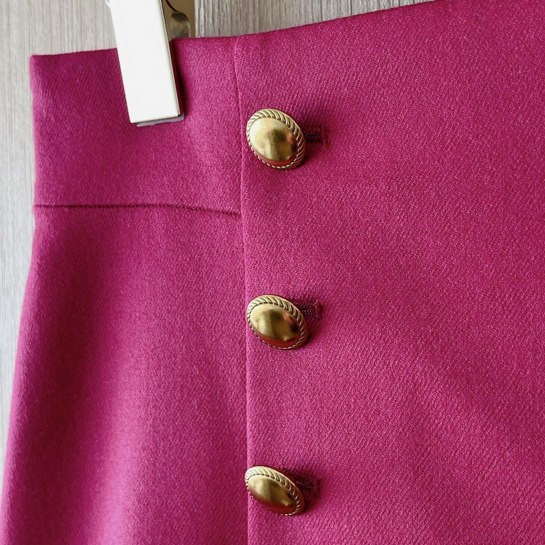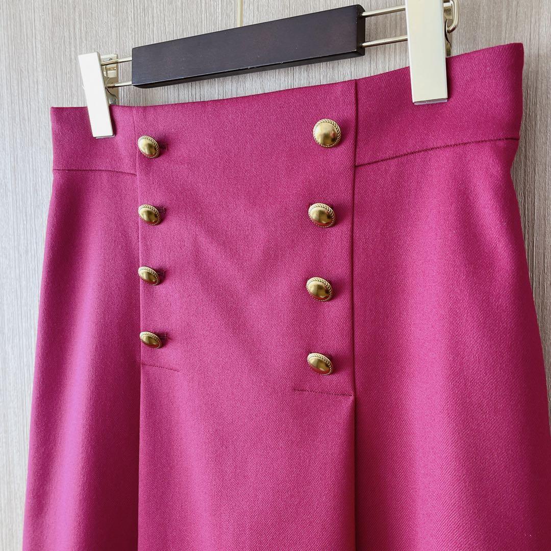 ゴールドカラーのダブルボタンをデザインした、シルエットの美しいスカート。
