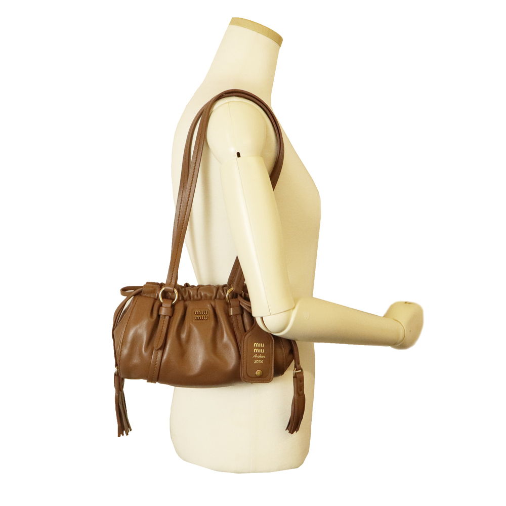 (新品・未使用品)ミュウミュウ miu miu ジョワ ミニ ショルダーバッグ ナッパレザー COGNAC コニャック ゴールド金具 5BP089