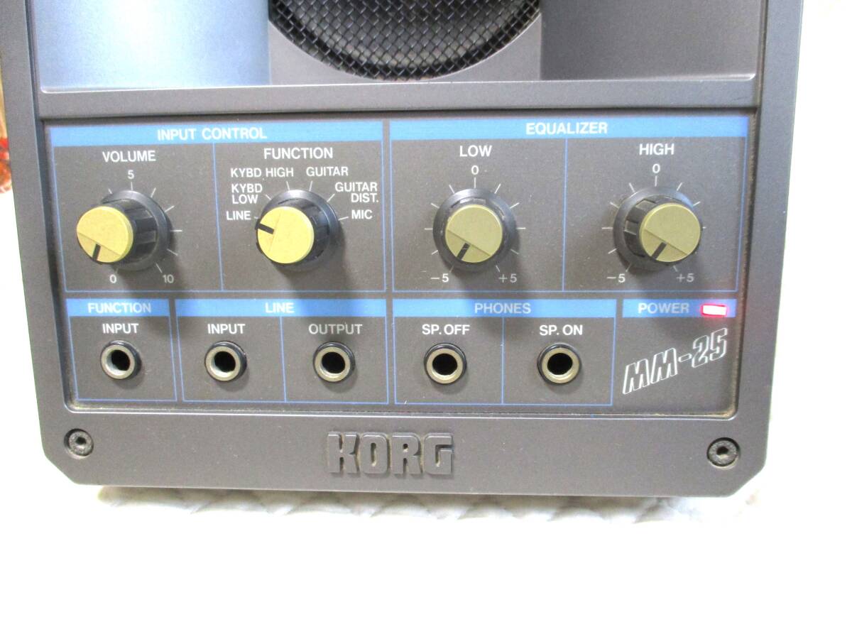 ・KORGのパワードスピーカー、MM-25です。古いモデルですが作りのしっかりした機材で、様々な機器を接続できますので、何かと便利でした。Guitar入力もそれなりに使える音です。