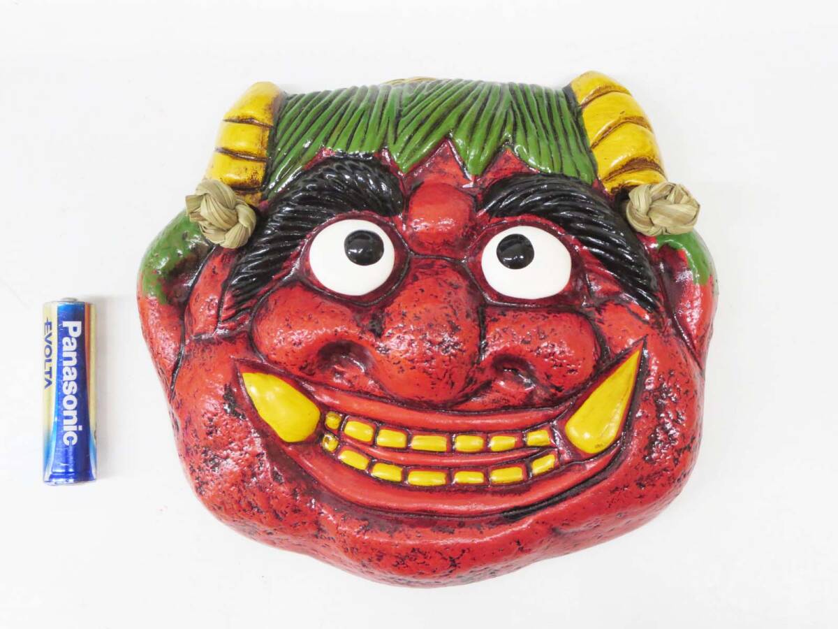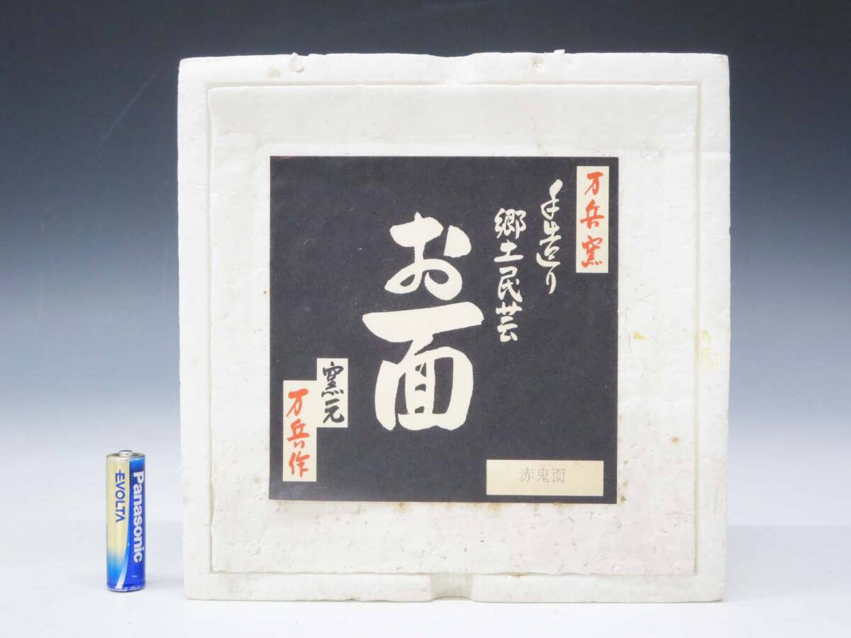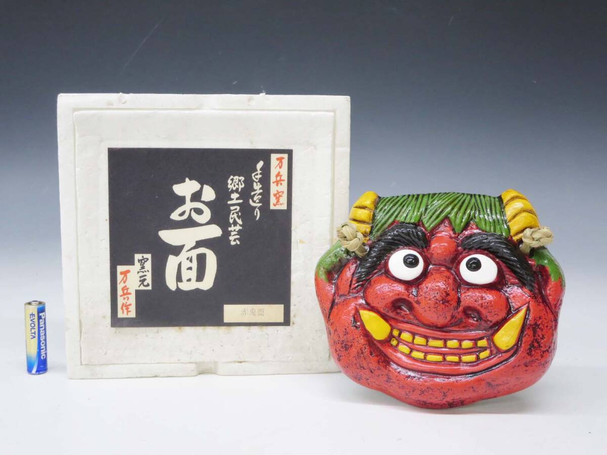 ◆(EG) 万兵窯 赤鬼面 お面 箱付き 陶器製 手造り 工芸品 民芸品 郷土玩具 縁起物 壁掛け 壁飾り インテリア雑貨