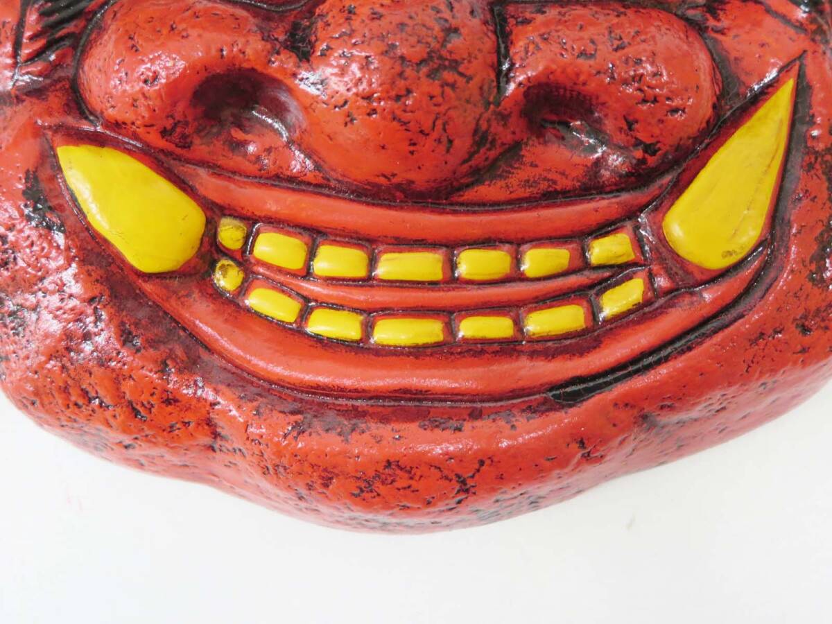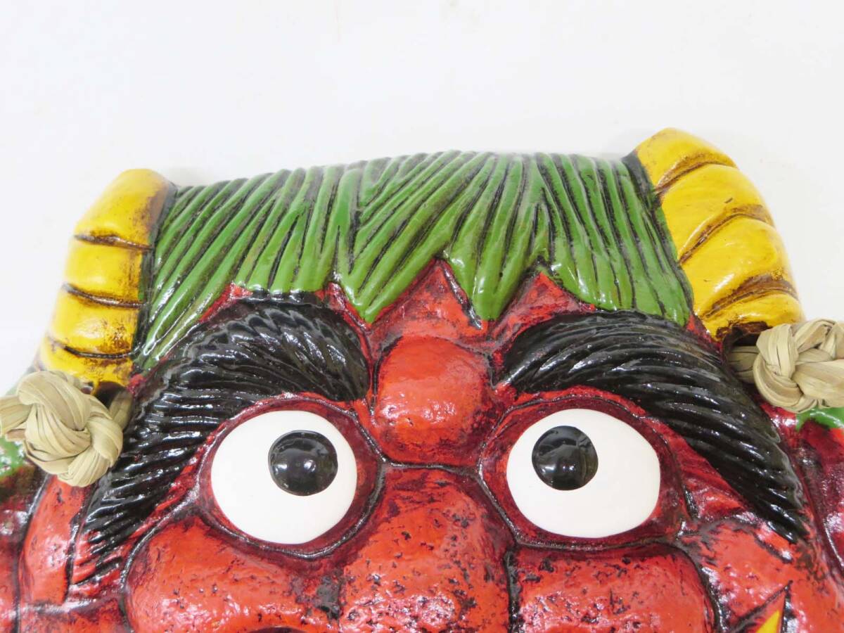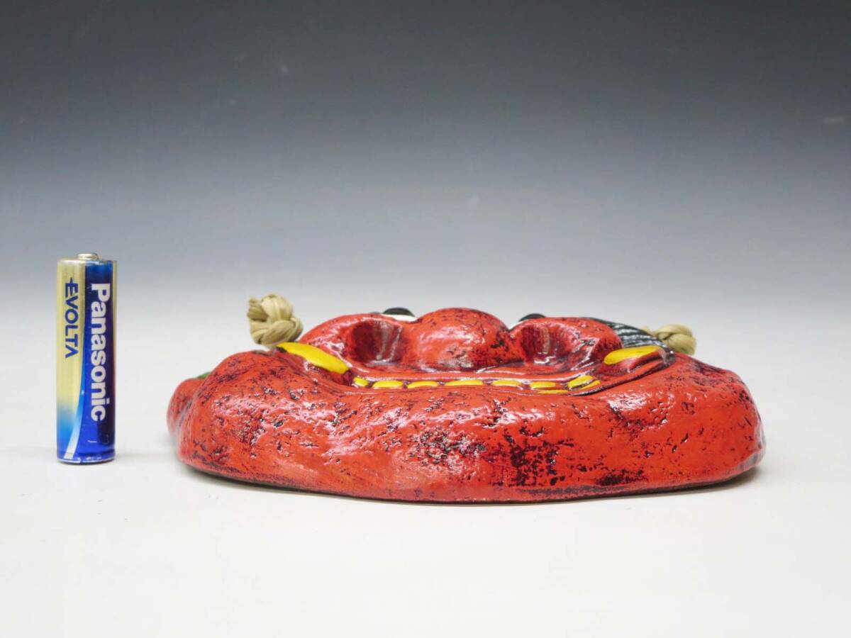◆(EG) 万兵窯 赤鬼面 お面 箱付き 陶器製 手造り 工芸品 民芸品 郷土玩具 縁起物 壁掛け 壁飾り インテリア雑貨