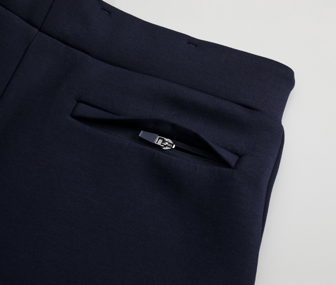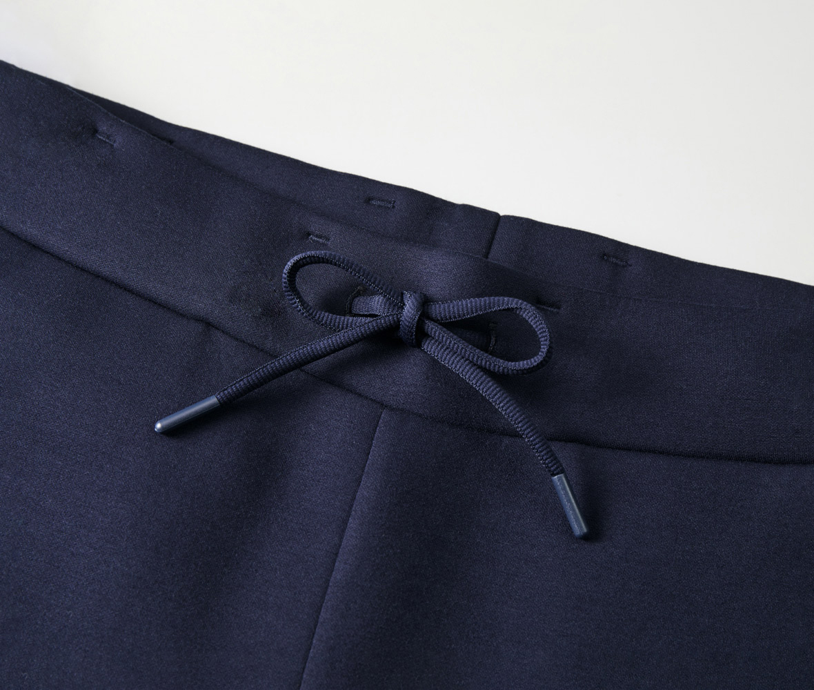 2枚の生地を中糸で繋ぎあわせたダンボールニット生地のパンツ。生地の中に空気の層ができるため、軽量で、保温性は折り紙つき。肌寒い季節には特に重宝すること間違いなしの一枚です。ワタリ幅は広すぎず、ゆるやかにテーパードしたすっきりめのシルエットが動きやすさも担保。裾口はあえてリブではなく2本針始末を採用したことで、スウェットパンツのような野暮ったさがなくアーバンテイストな仕上がりに。