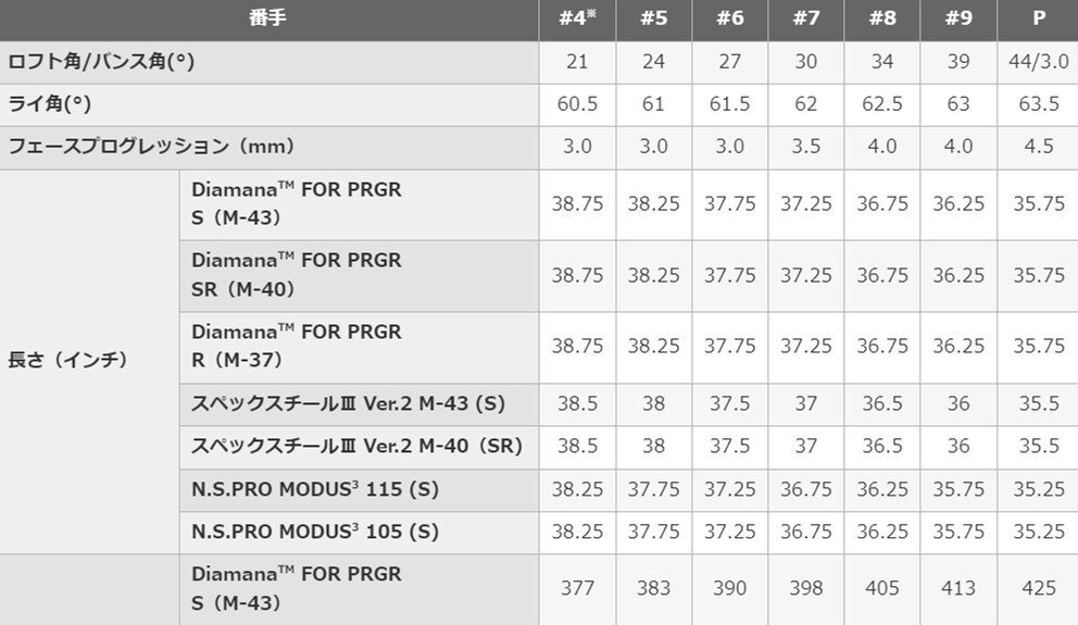 ウェイト | 約390グラム | ライ角 | 61.5° |
