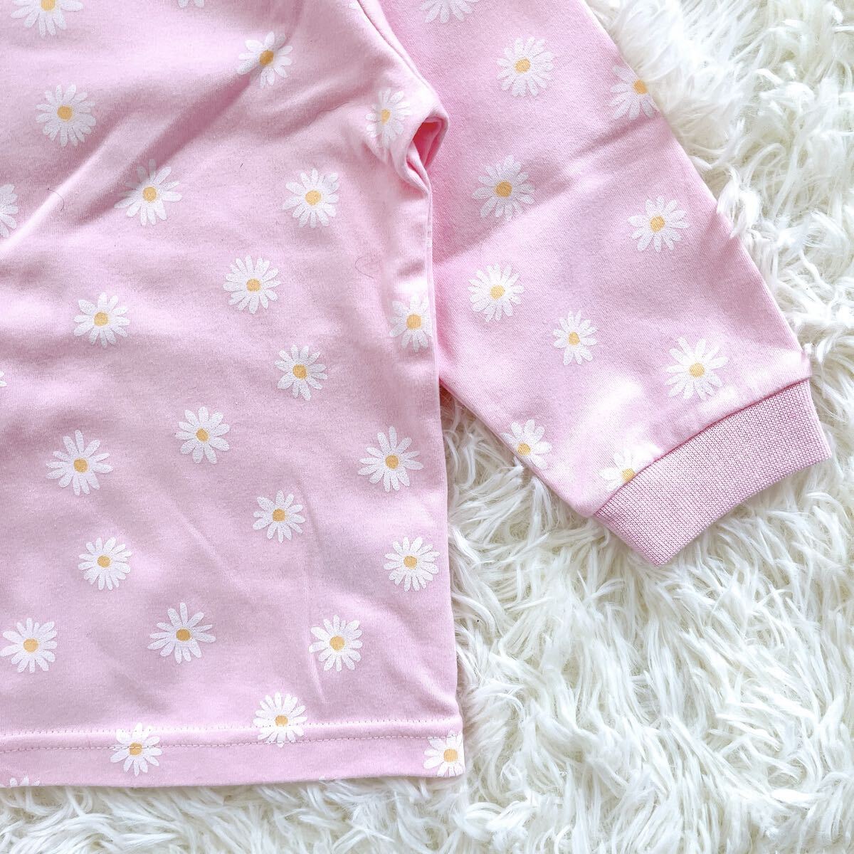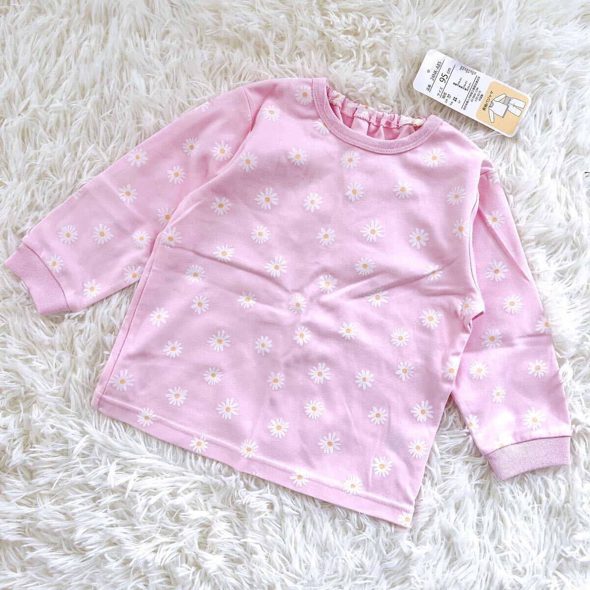 パジャマ/上下セット/セット/セットアップ/女の子/ガールズ/子供/こども/子ども/キッズ/花柄/マーガレット/ピンク/白/白色/ホワイト/長袖パジャマ/長袖/長ズボン/パンツ/ズボン/90cm/95cm/新品/未使用/美品/タグ/タグ付き/タグ付/ベビー/赤ちゃん