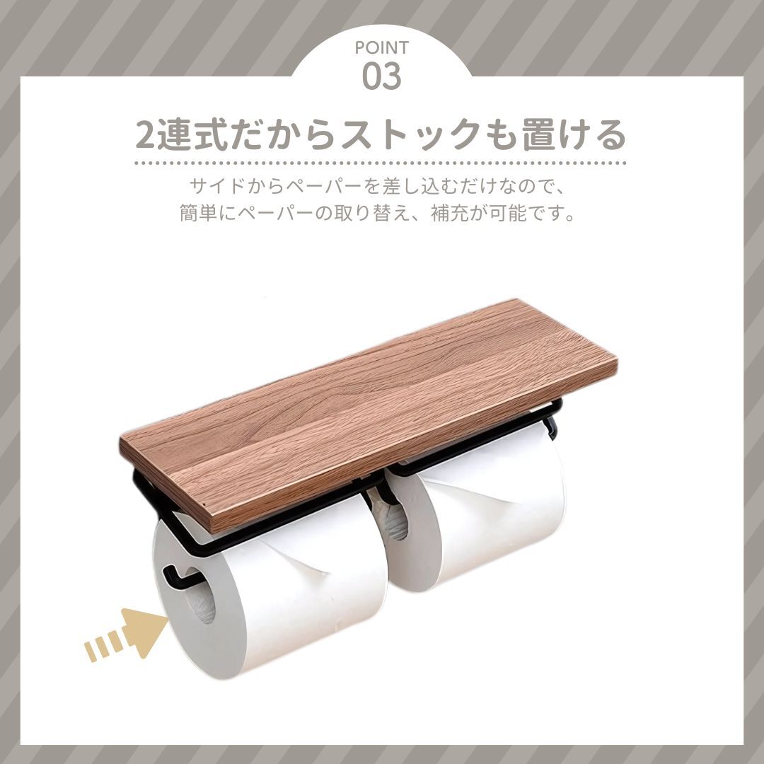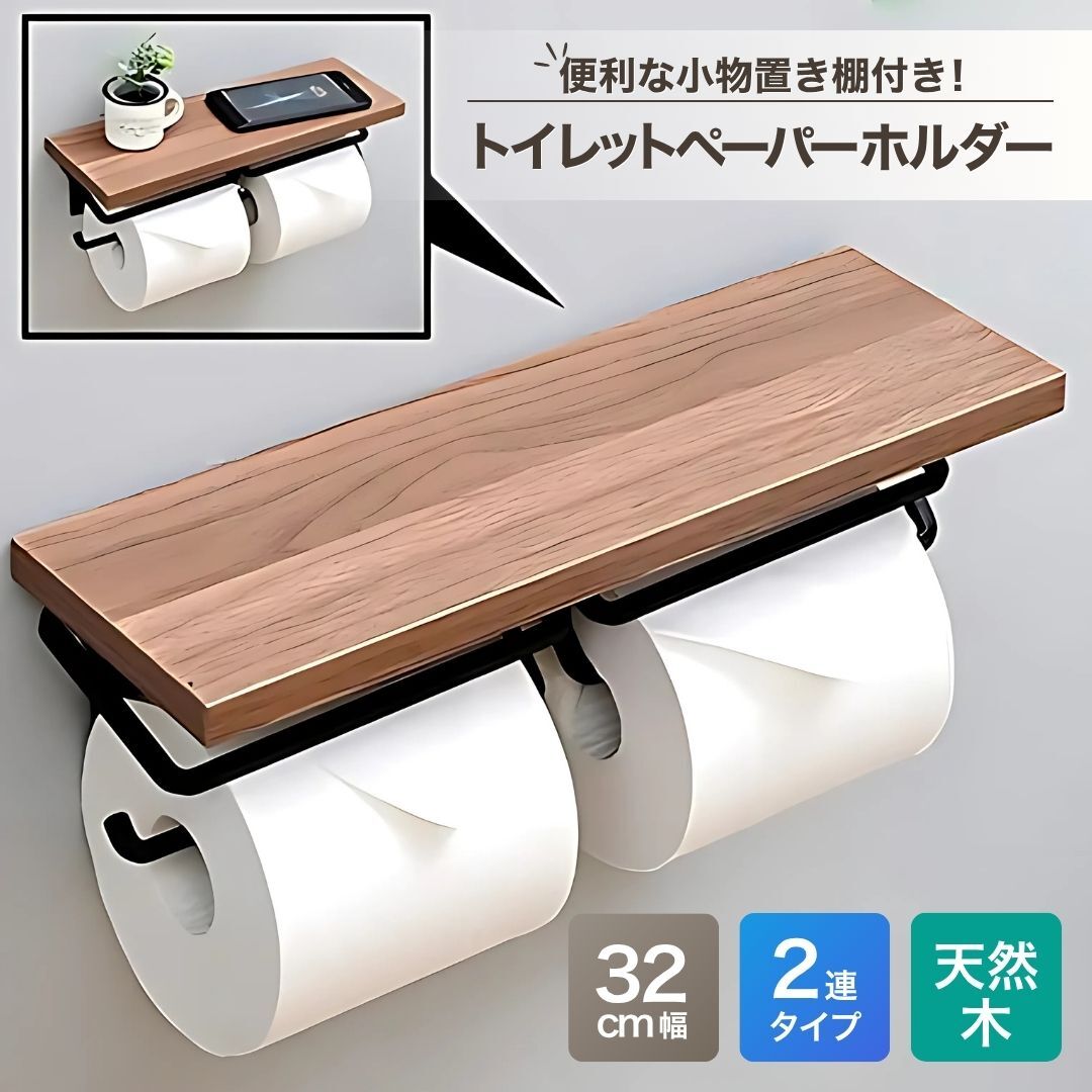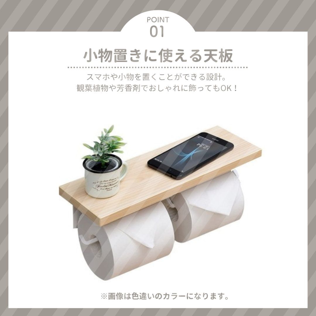 トイレットペーパーホルダー 2連 ダブルタイプ 天板 棚付き おしゃれ モダン 北欧 アンティーク インテリア デザイン 天然木 木製 ウッド