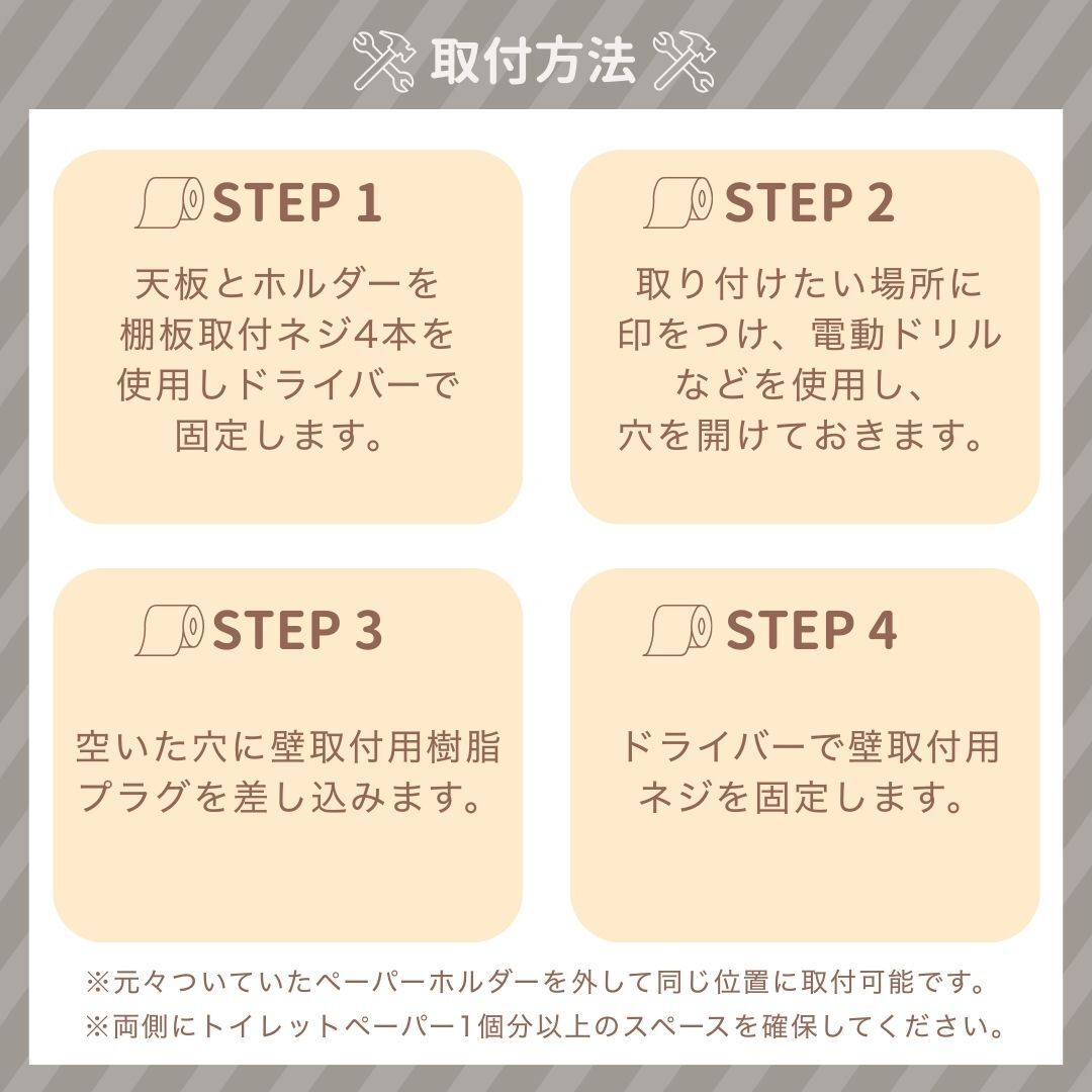 付属品:棚板取付ネジ4本、壁取付用樹脂プラグ4本、壁取付用ネジ4本