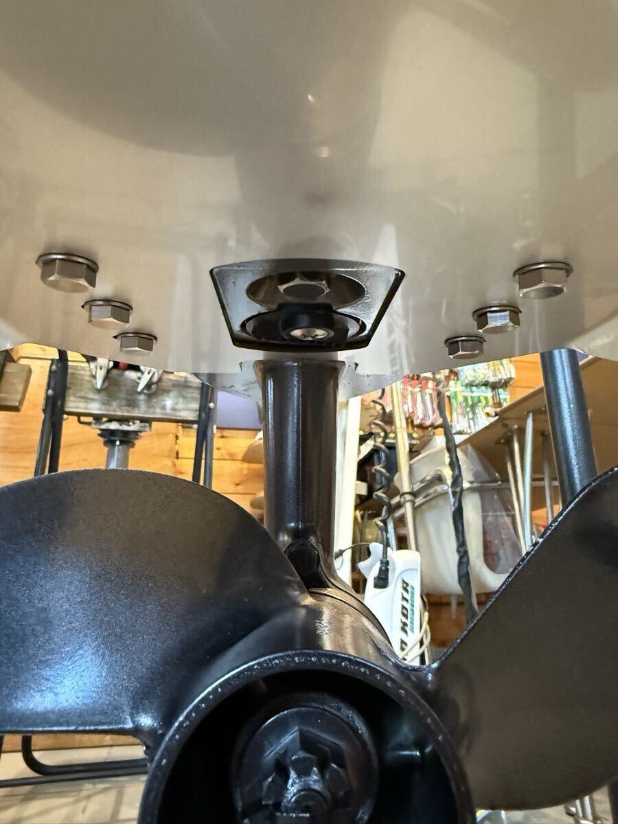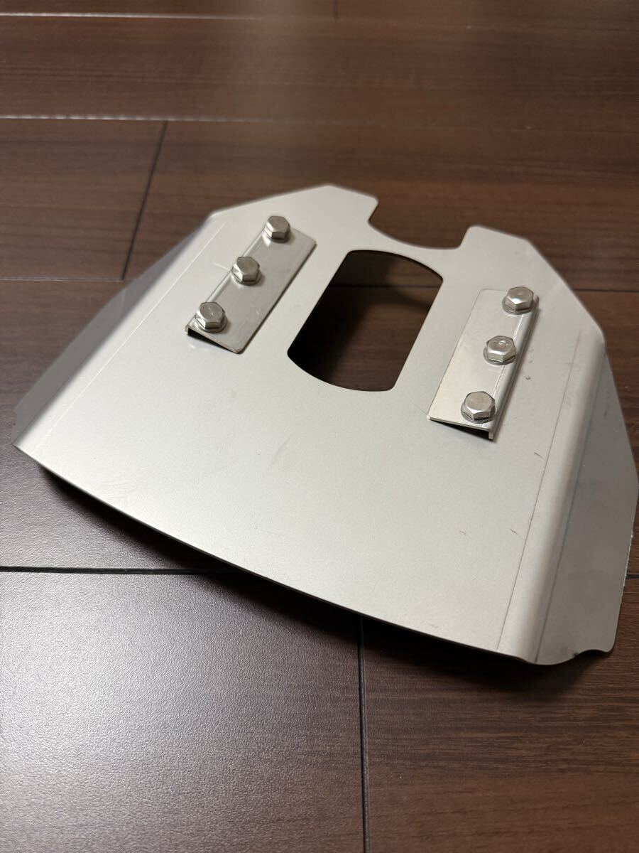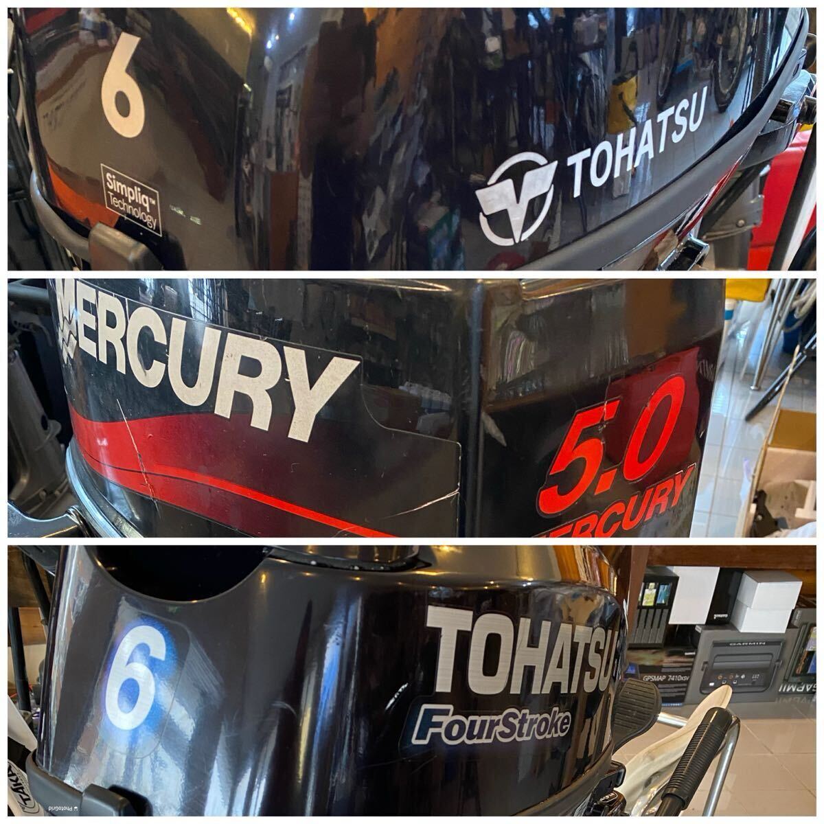 | トーハツ・マーキュリー 4馬力・5馬力・6馬力 2ストローク・4ストローク船外機 スタビライザー トーハツ・マーキュリー4馬力・5馬力・6馬力 2ストローク・4ストロークどちらでも船外機本体の加工無しで取付出来ます。 2馬力用よりも大きめになります。 ★注意★ 1.5㎜厚のコピー商品に注意して下さい。 必ず曲がります。 海で使用する場合、水中では波の影響でスタビライザーに上下に働く大きな力が連続的に掛かります その影響で1.5㎜だと本体及び取付プレートが曲がり 取付にガタが出て気付かない内に脱落してしまいます。 その他にも1.5㎜だと薄い為、ネジ山が締め付けトルクに負けて潰れてしまいます。 【スタビライザーの効果】 滑走(プレーニング)というのは物体を支えるのに浮力よりはるかに大きな揚力が作用して航走している状態をいいます。 船底に働く揚力によって艇体が持ち上げられ、滑走状態になるとバウが下がり水に対して3°~5°のトリム角(縦傾斜)で水面を滑るように走行するのが特徴です。 よってスタビライザーも3°~5°のトリム角で常に裏面に働く揚力が発生します。 それによって船外機が持ち上げられ滑走状態により早く持ち込みます。 様々な形状のスタビライザーでテストしましたが、格好良いのですが、スタビライザーの左右を平行90°曲げてしまうと、スタビライザー裏面に当たった水の逃げ場が分散されず後方だけになり、滑走状態時に流速が追いつかず滞留してしまい、スタビライザーの揚力が落ちてしまいプレーニング効果が落ちる傾向にあります。 強度を保つのにスタビライザー本体の曲げは必要です。 強度を保つ最低限の折曲げで、尚且つ後方に水が流れ易くなる様、曲げ加工を施し流速を確保しプレーニング効果が落ちない様、本製品は設計されてます。 是非、本スタビライザーの効果を体感してみて下さい。 滑走状態が長い程、燃費もかなり良くなります。 材質:SUS304(ステンレス) 2B材使用 2.0mm レーザーカット後折り曲げ加工 塩害(サビ)に強く、曲げ加工により強度は抜群です。 船外機を横置きした場合もペラを保護してくれます。 (海水にて使用しましたが全くサビません) 船外機への加工(穴明け)等は船外機本体の塗装が剥がれ腐食の原因となりますが、本製品は無加工で取り付け可能ですので腐食の心配はありません。 取付はキャビテーションプレートを挟み込む様に取り付けて下さい。取付位置は前後左右に調整可能です。 年式により加工が必要になる場合も御座います。 左右のプレート及び取付ボルトは付属します。(ステンレス製) 船外機下部へのプロペラからの水の跳ね上げがかなり軽減されます。 (エンジンへの海水の飛散が減ります) 当方オリジナル製品となります。 注)加工時に付くキズ、油、焼け、ドロスの付着、バリ等御座います。 全ては画像にて判断願います。 |