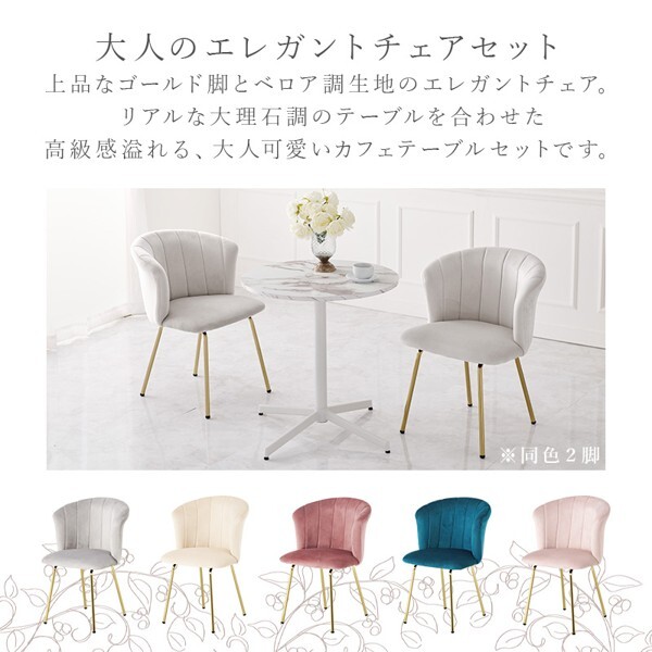 ※現在ご覧の商品ページはライトグレーのご購入ページとなります。 ヤフオクの仕様上単一ページに複数バリエーションを掲載することができませんので、他バリエーションが希望の場合は別ページでご購入お願い致します。 ベロア調生地のチェアと、リアルな大理石調天板のカフェテーブルを合わせた上品で大人かわいい3点セット。 配達業者を指定いただくことはできません。 北海道/沖縄/離島のお届けに別途中継料金が発生します。 ※別途送料が発生する場合は後ほどご連絡させていただきます。 当店は正規店です。 タイミングによっては在庫切れの場合があります。
