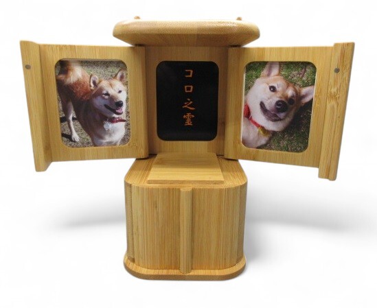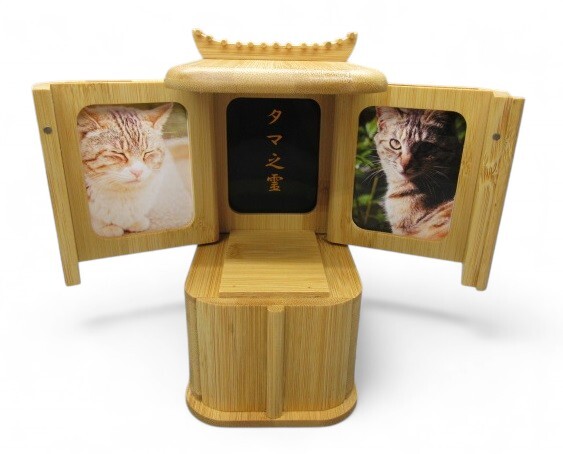正面と両扉に写真や位牌などが上から差し込めるようになっています。