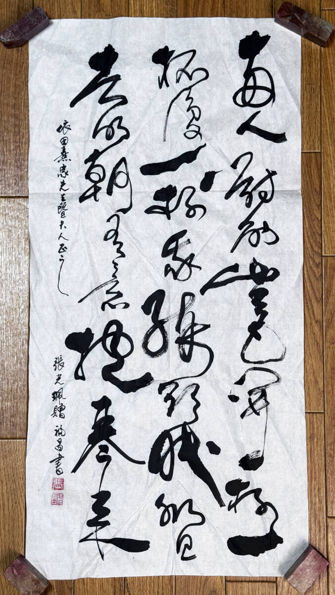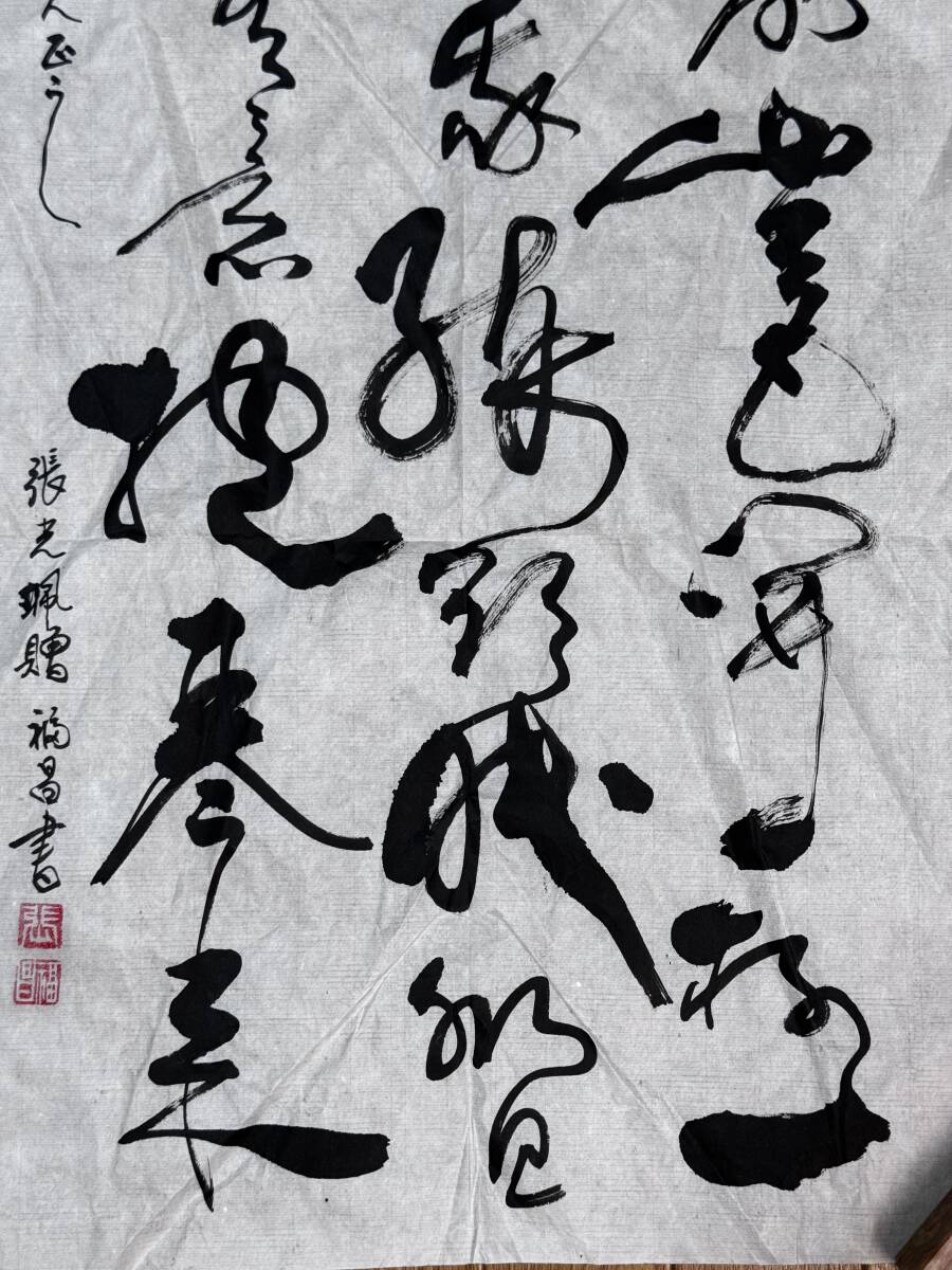 鳴】早稲田大学教授 依田熹家 蔵出◆張福昌 書 肉筆紙本 まくり SH259-11検:呉昌碩 斉白石 中国画 中国美術 掛軸 山水