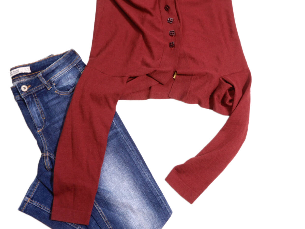 留めのボタンは上部に5つ、袖が下部に付いた変形デザイン。