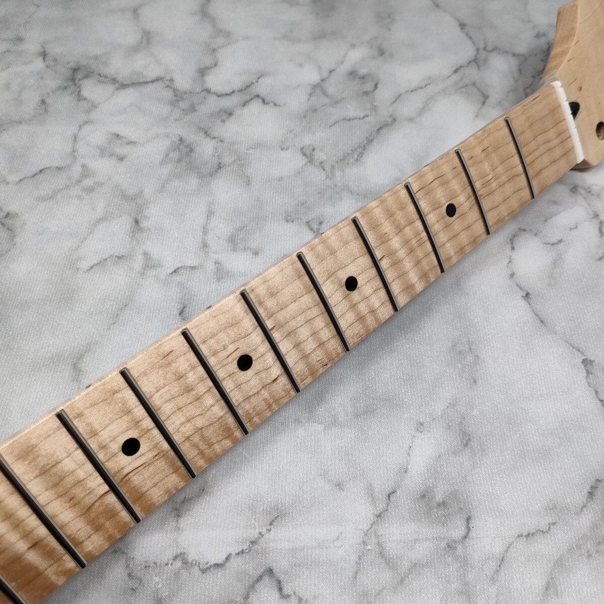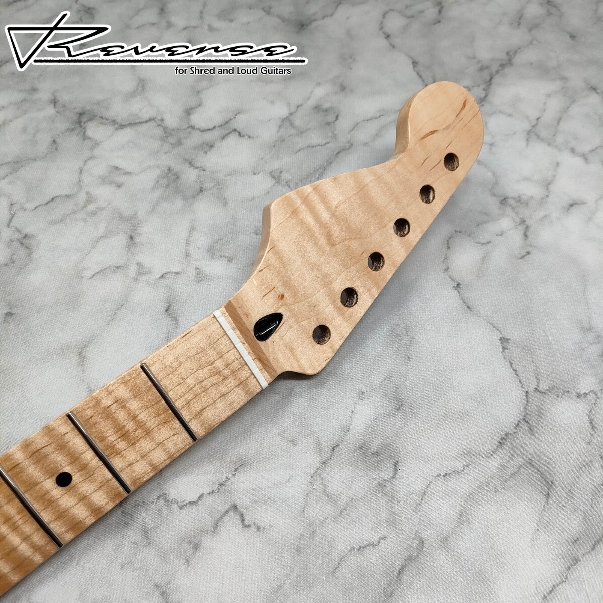 新品 リバースヘッド フレイムメイプル ギターネック 22F 虎目 ラウンドエッジフレット グロスフィニッシュ