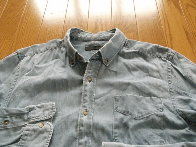 HARE ハレ かっこいい長袖ドレスシャツ デニム風ネイビー サイズM