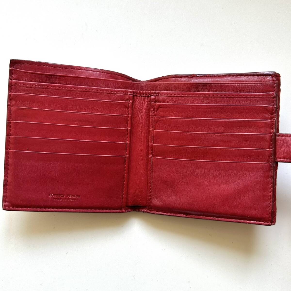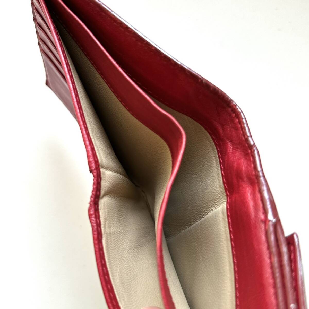 商品説明 | ご覧いただき誠にありがとうございます。 ボッテガヴェネタ BOTTEGA VENETA 二つ折り財布 イントレチャート レッド になります。 色はレッドです。 全体的に使用感があります。 外からはわかりづらいですが、カード入れ内部に汚れがあります。 汚れの箇所は左側の上から3番目と右側の1番上です。 イントレチャートに破れはありません。 【仕様】 縦12cm、横11cm、厚さ2.5cm、小銭入れ、お札入れ、カード入れ×10、フリーポケット×2 |