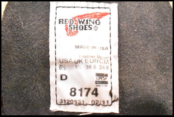 【6.5D 美品 11年】レッドウィング 8174 黒スエード アイリッシュセッター ブラック ラフアウト プレーン ブーツ redwing HOPESMORE