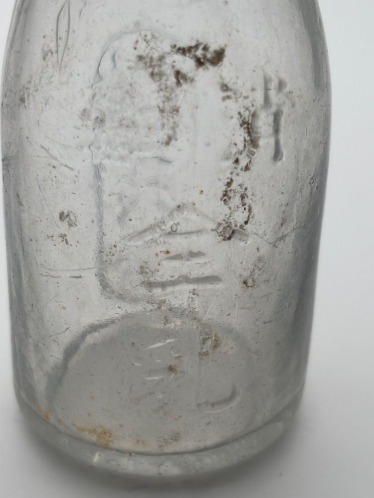 | 商品説明 | 川並牧場 消毒全乳とエンボスが入ったねじり蓋付きの古い牛乳瓶です。 底にもヤマにタのエンボス入り サイズ 高さ 約13.4cm × 底径 約4.5cm 古いものですので、経年による汚れ、スレ、シミ、当たり、キズ、歪み、傷み等がある場合がございます。 それらを踏まえた上でのご入札をよろしくお願いします。