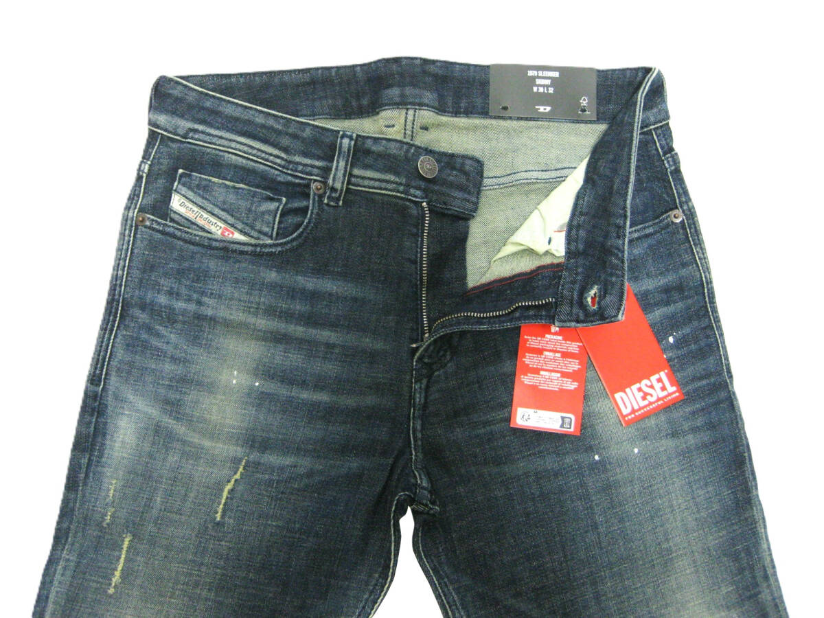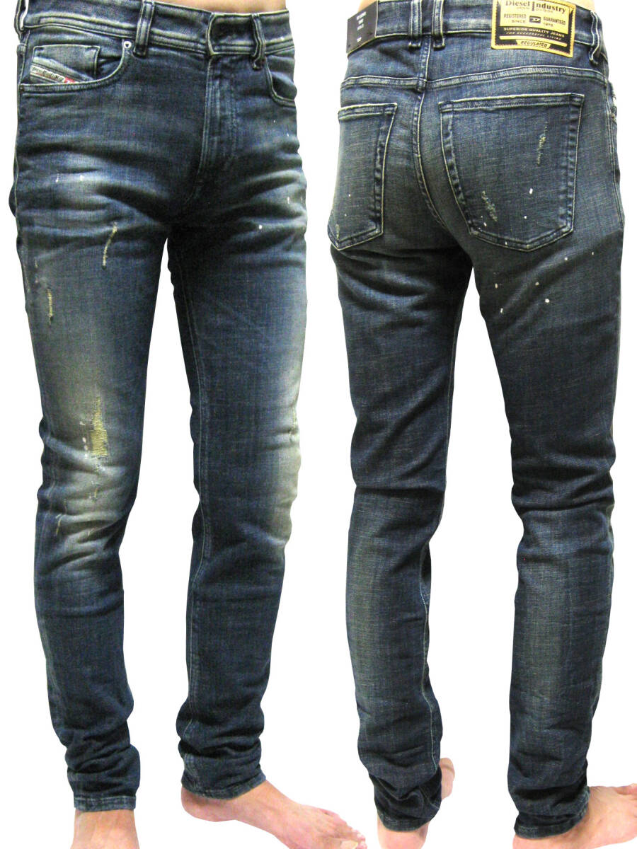 新品 直輸入 DIESEL 「超」ストレッチ ダメージ、リペア、 ペイントのフル加工 ジーンズ W33インチ 1979 SLEENKER-R A12019 R97L0