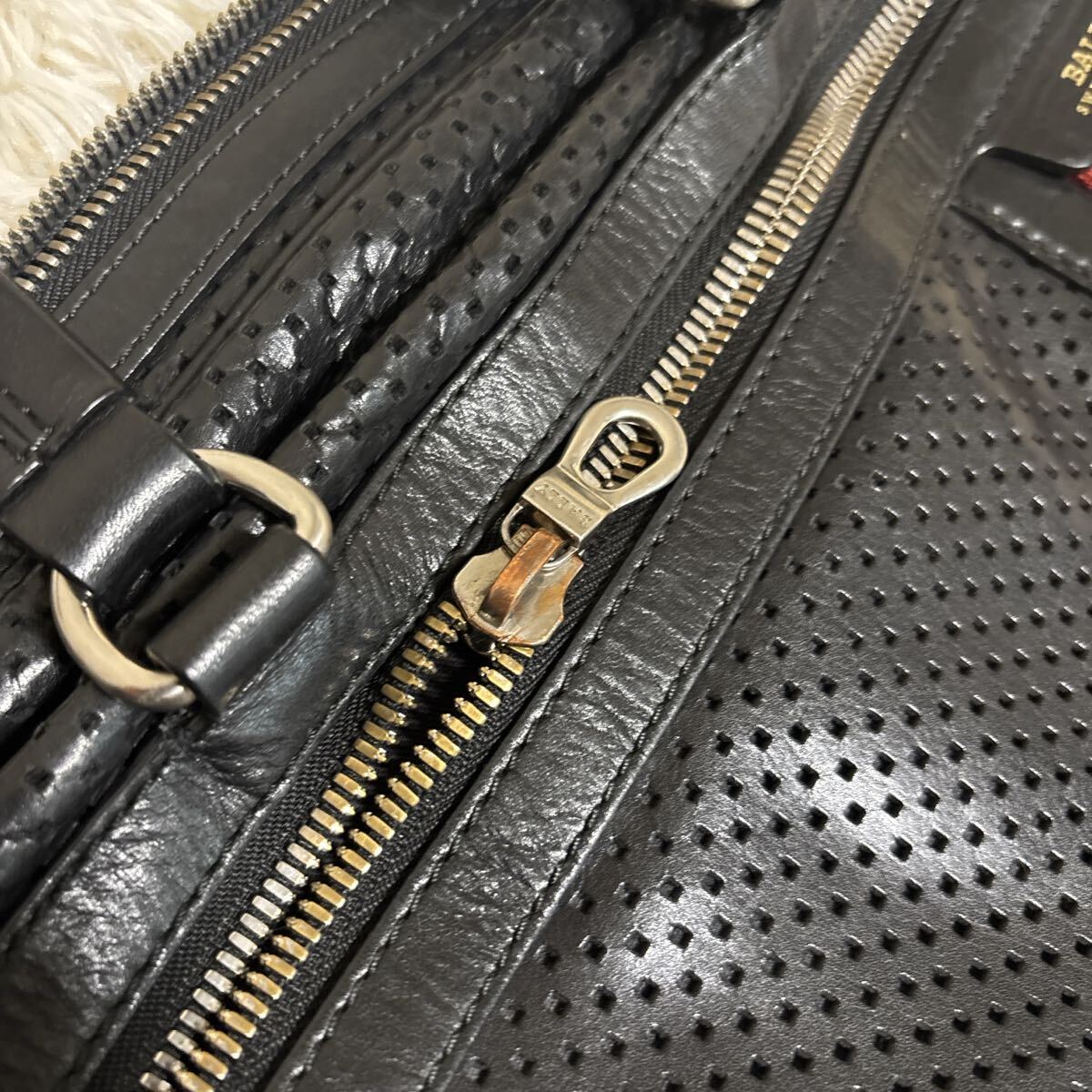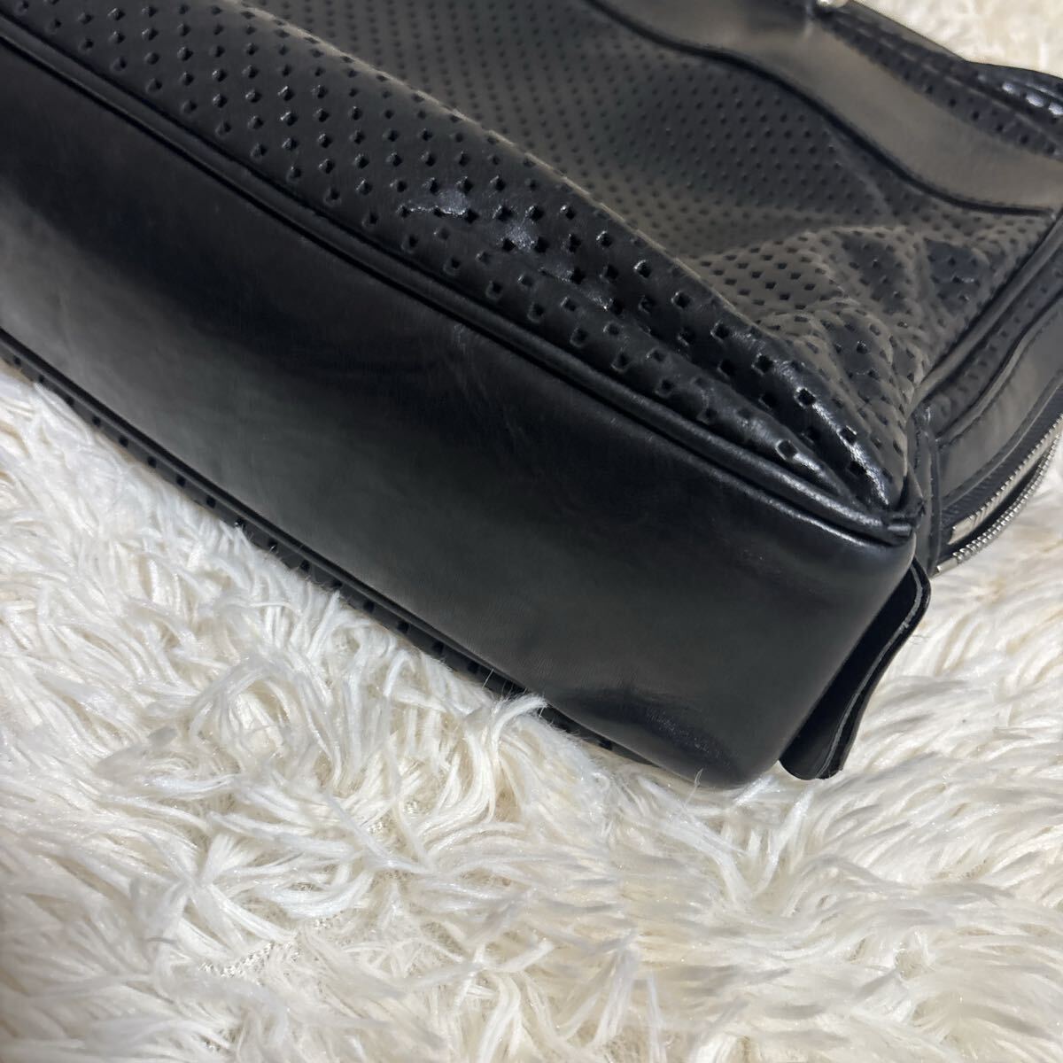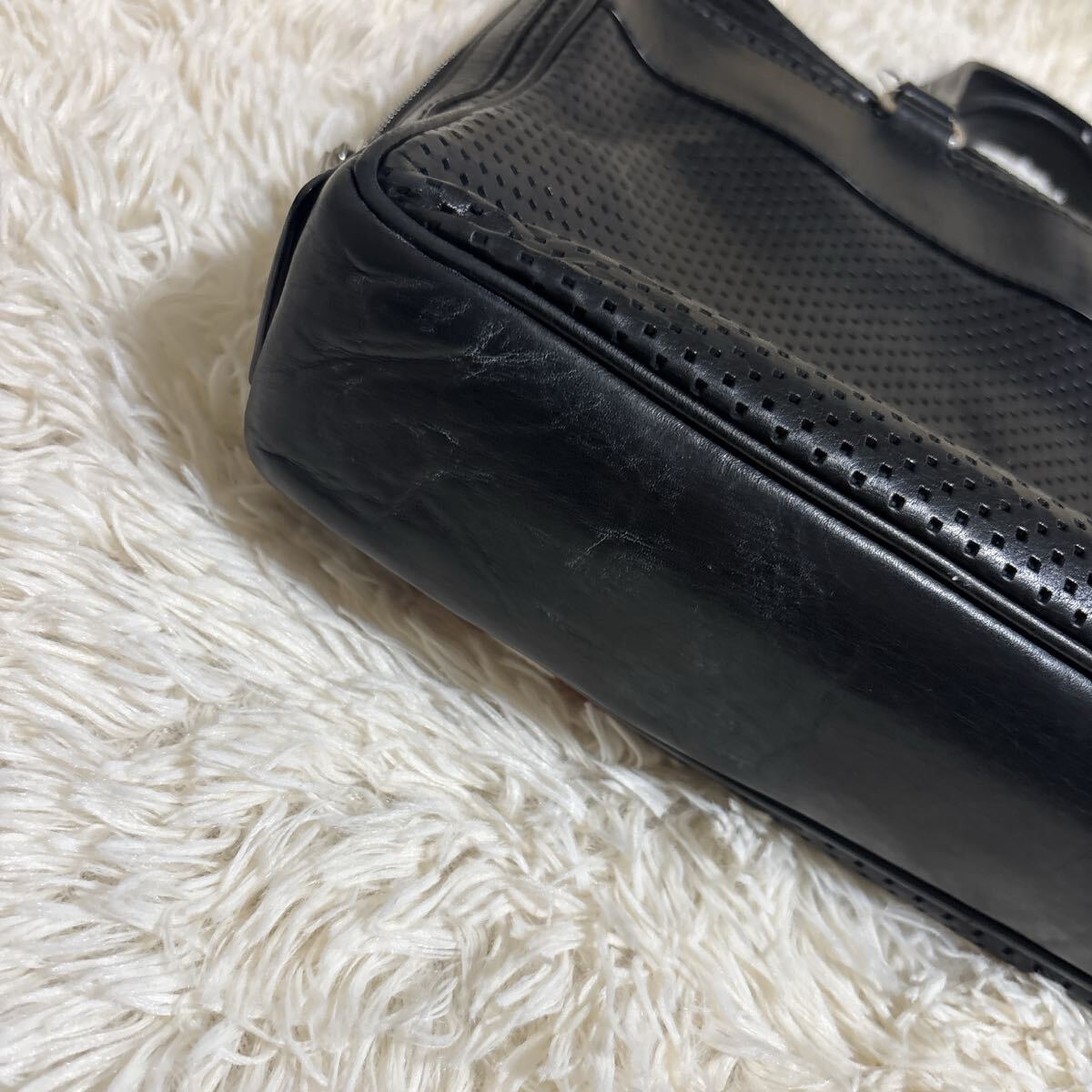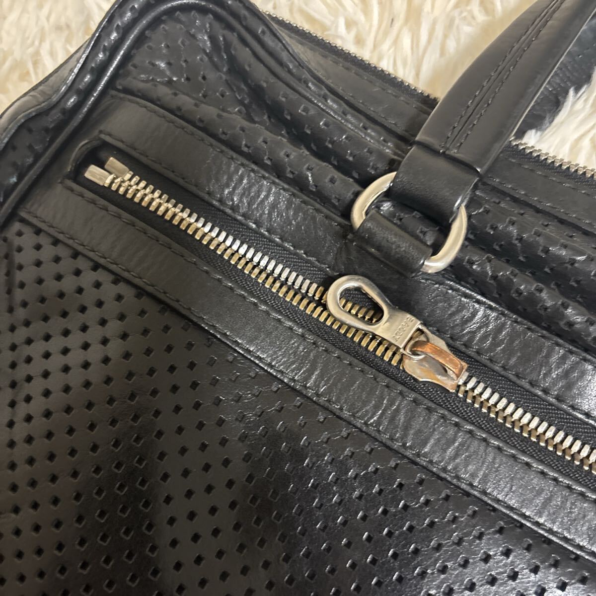 上質なレザーを使用した美しいビジネスバッグ、レーシーな穴あきデザインがオシャレなお品になります。