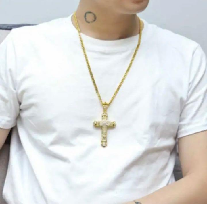 ジルコニアクロスネックレス ゴールド 十字架 無骨