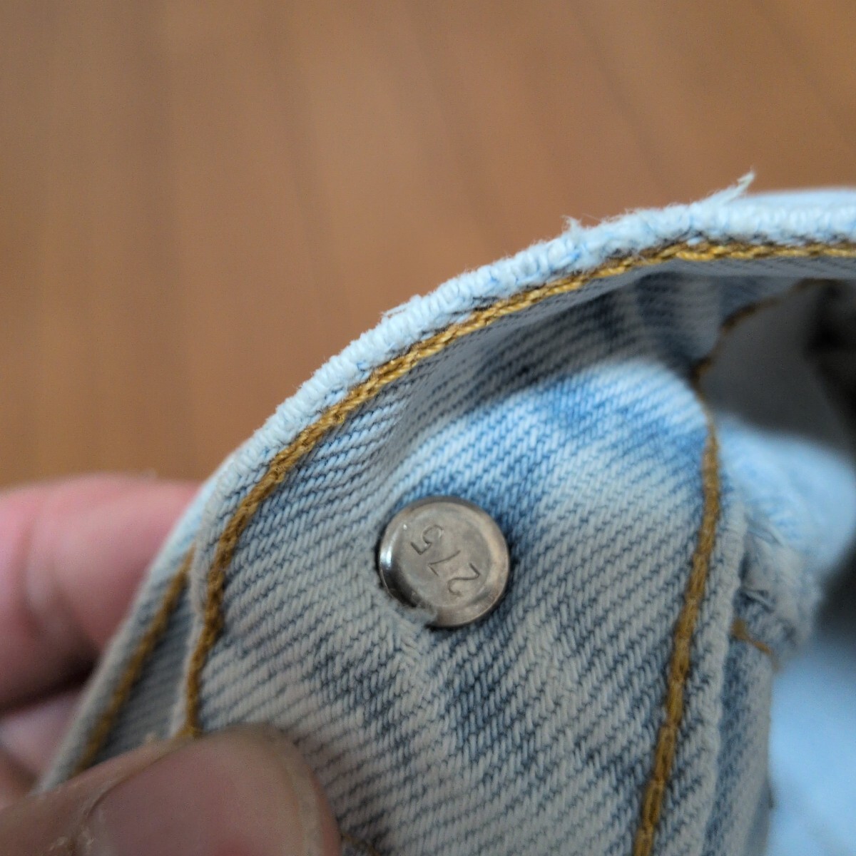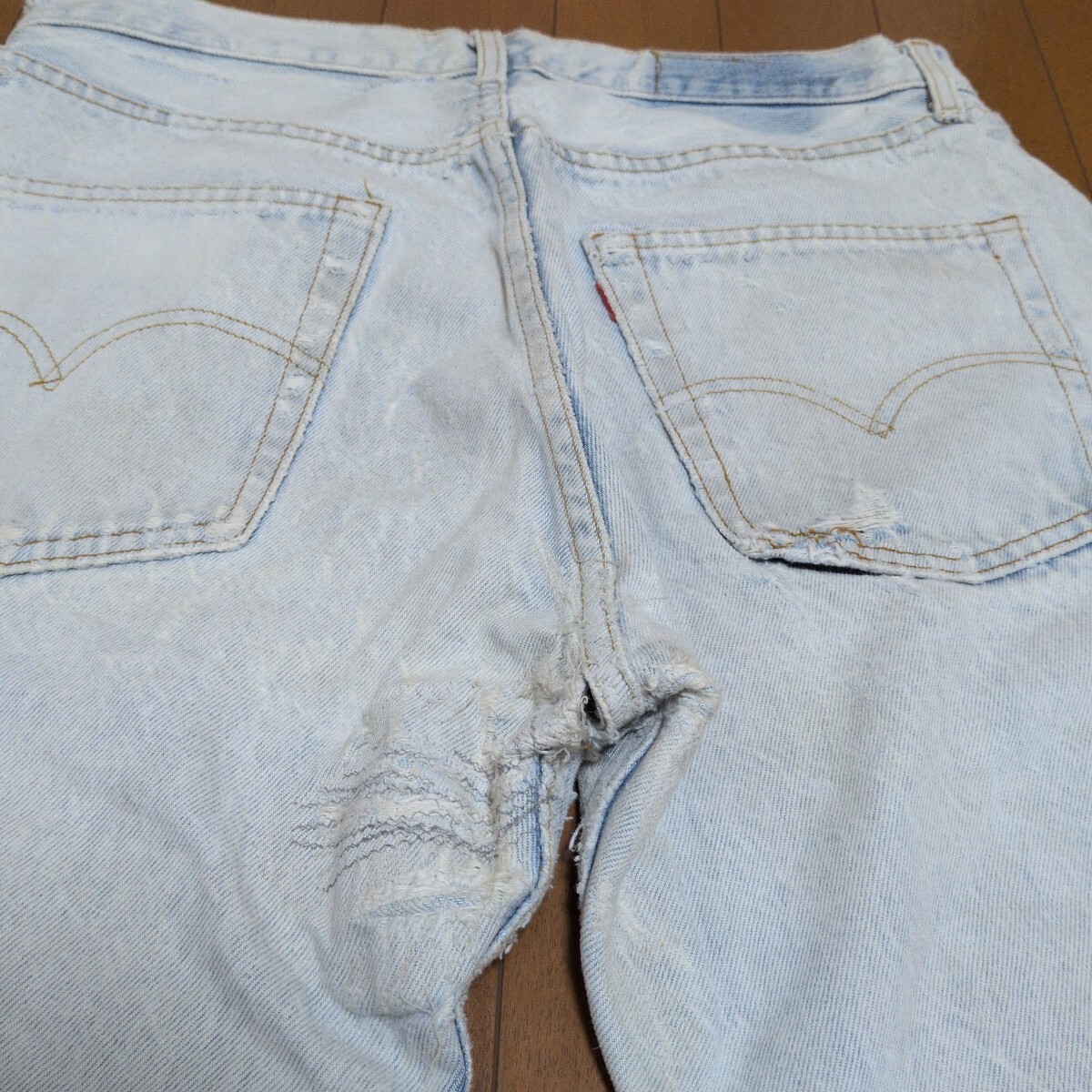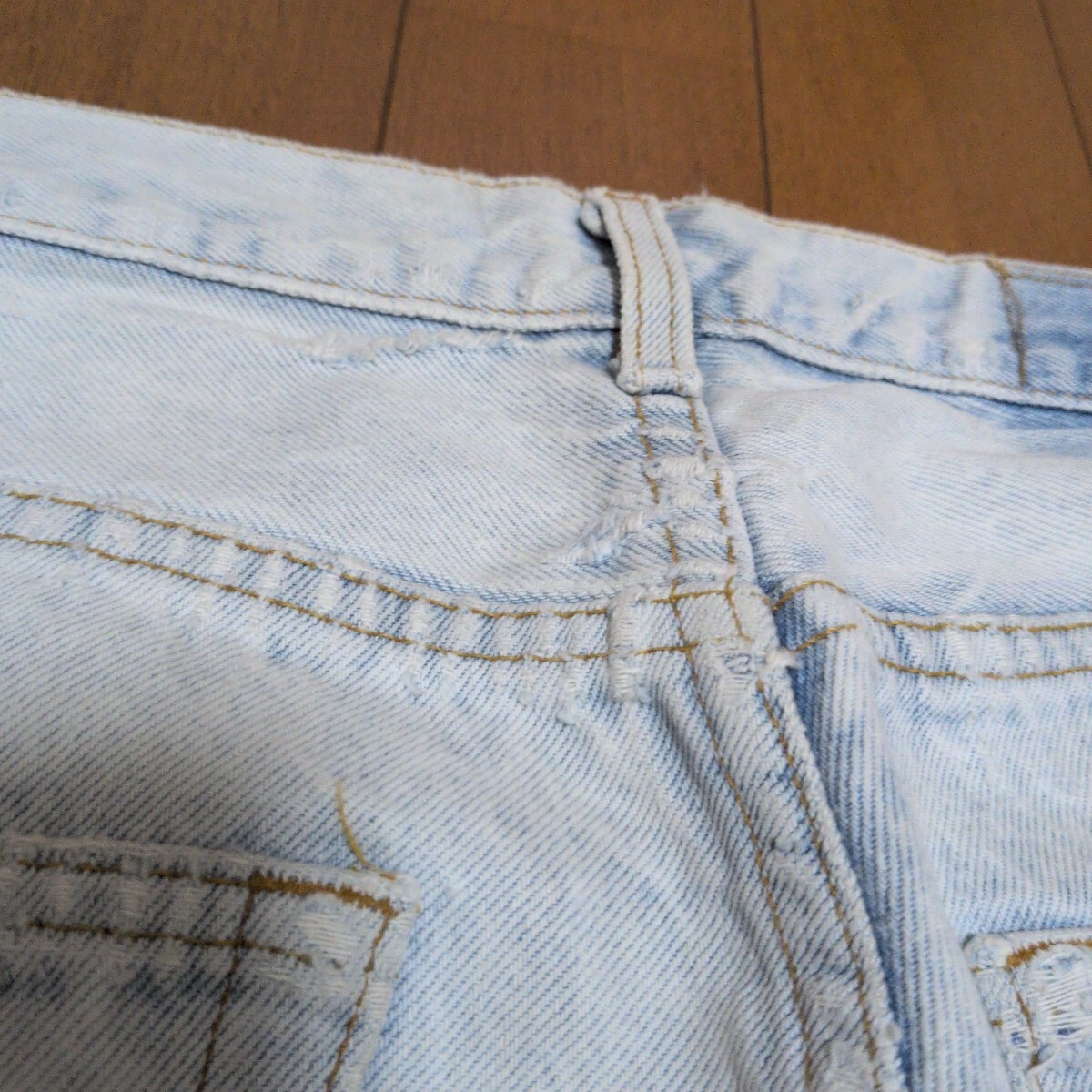 ウエスト付近、股付近、バックポケット付近にダメージがあります。