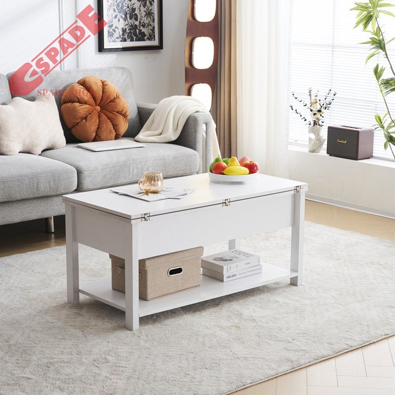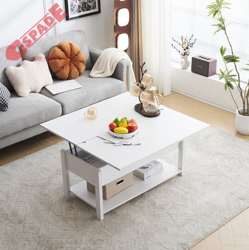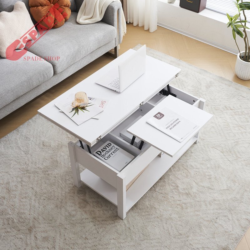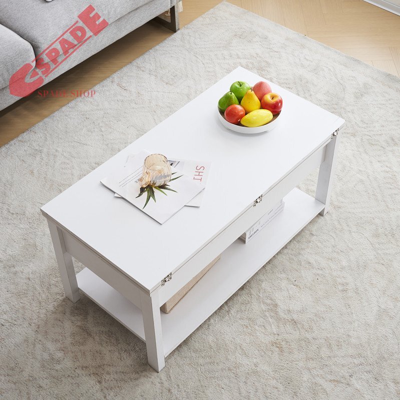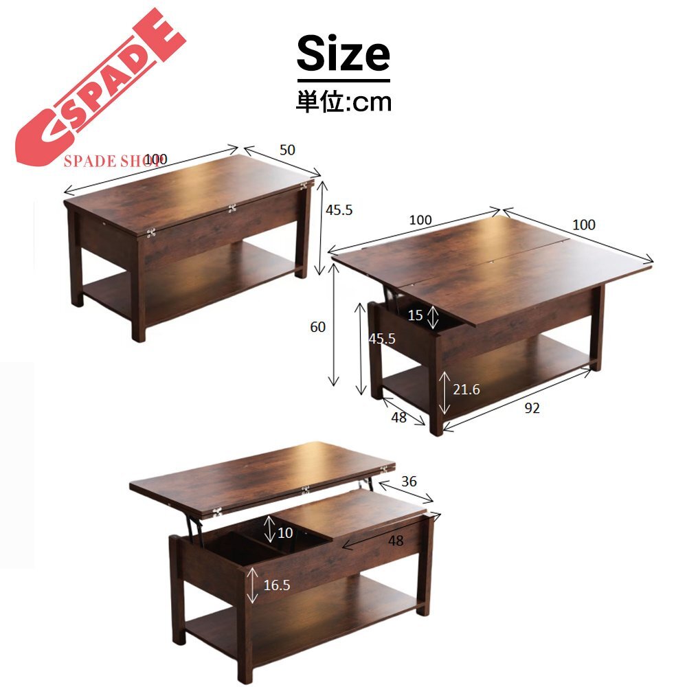 • 【3WAYモード調節と収納可能】 コーヒーテーブルは、3WAYモード調節機能により、天板が前後に分かれて昇降機能とディスプレイシェルフの組み合わせを特徴とします。天板の高さを調節できるガス圧昇降式。女性でもスムーズにお好みの高さに変更できるペダル式で、約45~60cmの間で無段階調節が可能です。天板を広げて100 × 100cmの大きなスペースにすることができ、3 ~ 4人で利用可能です。コンパクトで使いやすいサイズ感のテーブル。2人暮らしや、小さいお子様がいるご家庭にもオススメです
