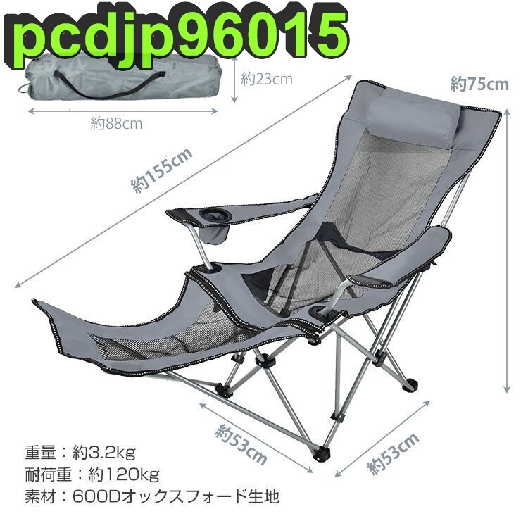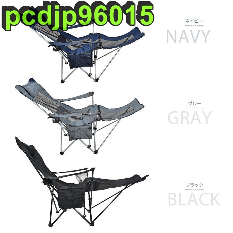 商品状態:新品未使用 【商品内容】:リクライニング式アウトドアチェア 【本体サイズ】:画像参照 【収納袋サイズ】:(約)88×23cm 【重量】:(約)3.2kg 【耐荷重】:(約)120kg 【素材】:600Dオックスフォード生地・アルミ合金 【カラー】:ブラック/ネイビー/グレー/コーヒー/迷彩 ★商品写真はできる限り実物の色に近づけるよう努めておりますがご使用のPCモニター設定や部屋の照明により多少、色の変化が感じられる場合がございます