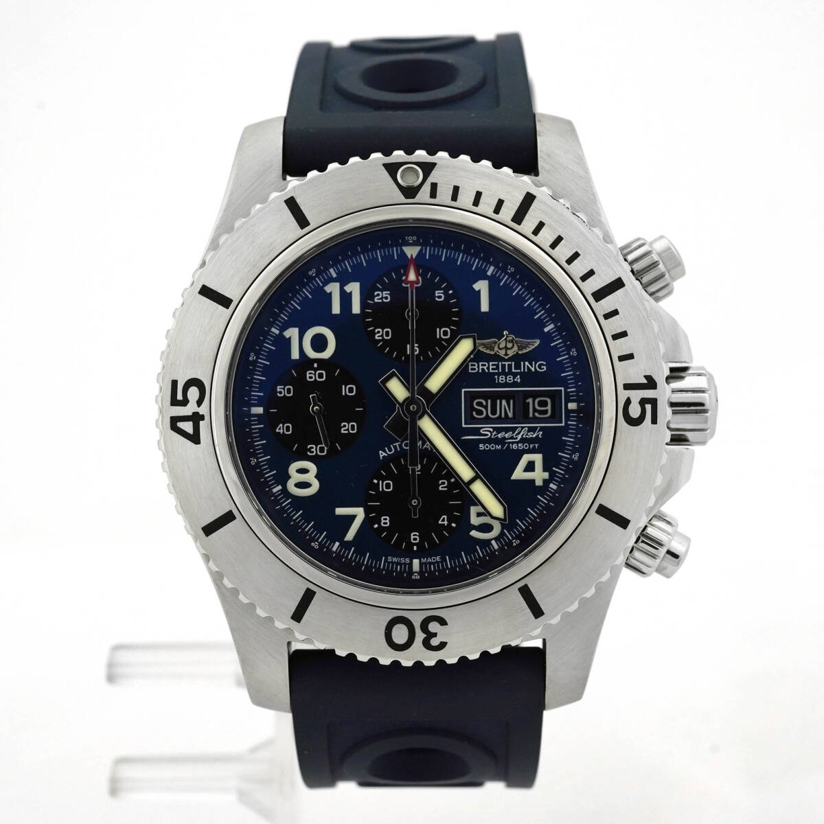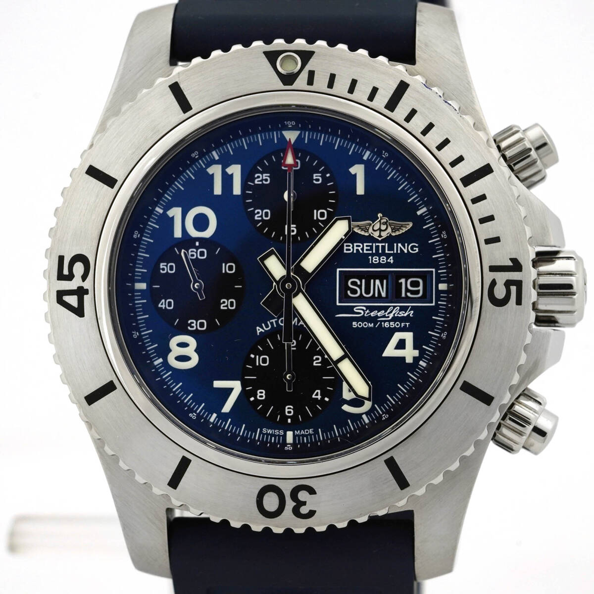 BREITLING ブライトリング スーパーオーシャン スチールフィッシュ A13341C3/C893 A13341 自動巻き ブルー文字盤 メンズ 保証書 (K-K451)