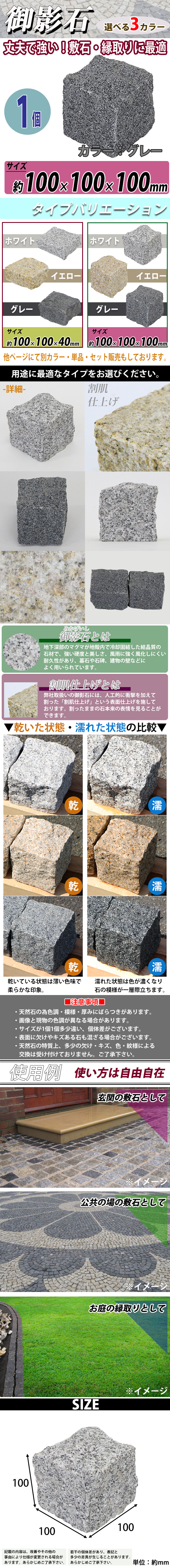 | 商品名 | 送料無料 御影石 ピンコロ石 天然 約幅100×奥行100×高さ100mm 割肌 1個 ミカゲ ピンコロ 敷石 敷材 石材 床材 天然石 花崗岩 花壇 縁 庭 駐車場 玄関 置き石 仕切り 庭石 一丁掛け 1丁掛け スクエア DIY グレー mikage1010101p |