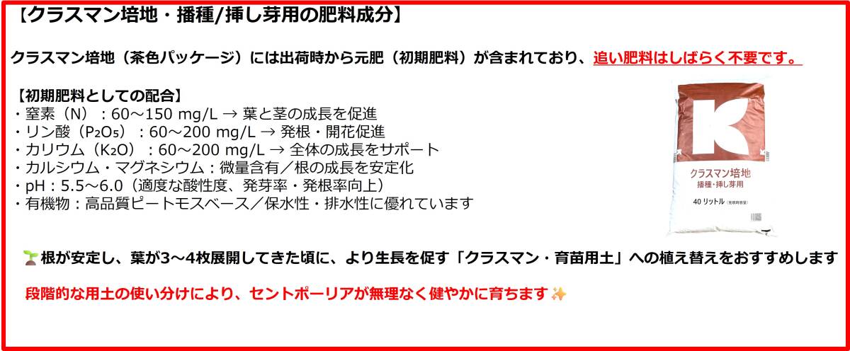 ・本商品は発根〜初期成長期に最適な専用用土です。