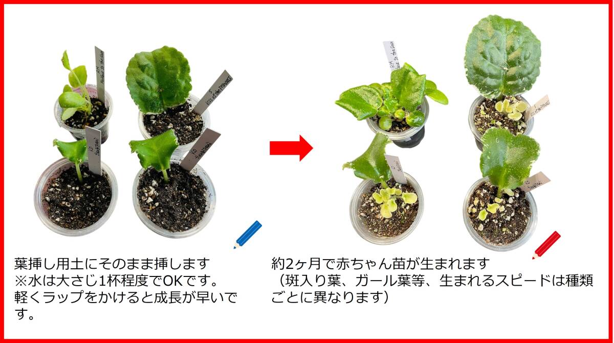 ・セントポーリアの葉挿し、ストーク挿し、クラウンカット株の初期育成に