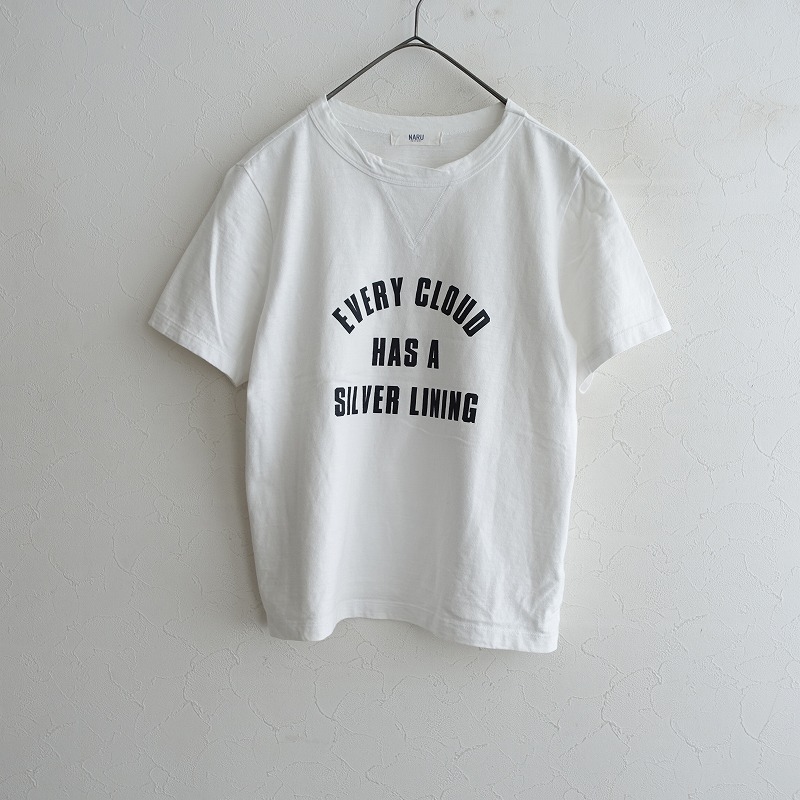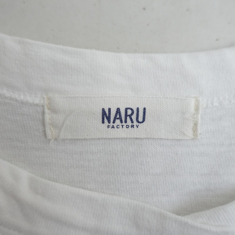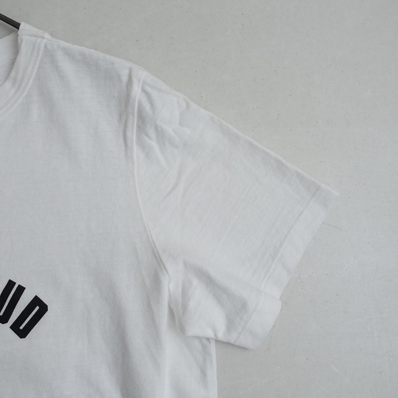 | NARUのコットン天竺ロゴプリント半袖Tシャツです。カラーはホワイトの天竺地で、ブラックのロゴプリントがあしらわれております。 |