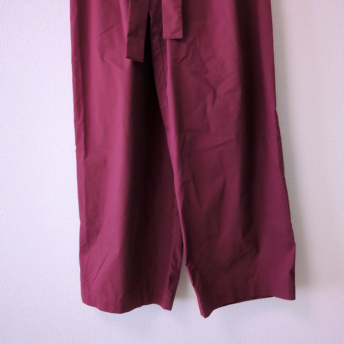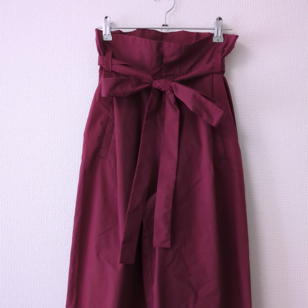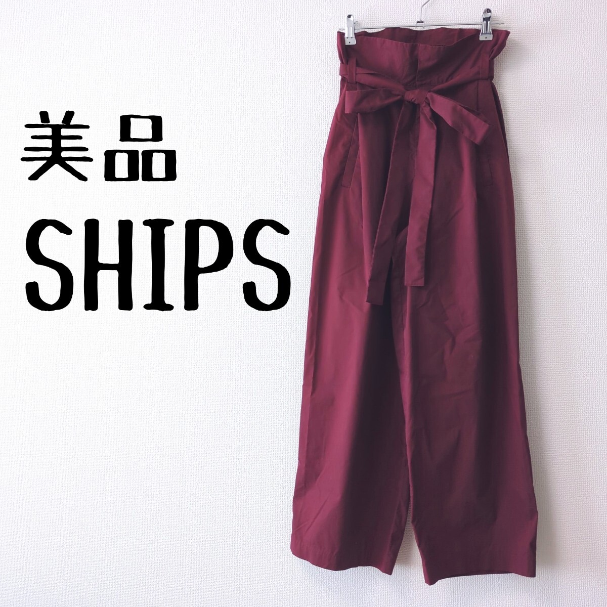 美品 SHIPS シップス ウエストリボン ストレートパンツ ボルドー 春夏秋 オフィスコーデ キレイめ ワイドパンツ