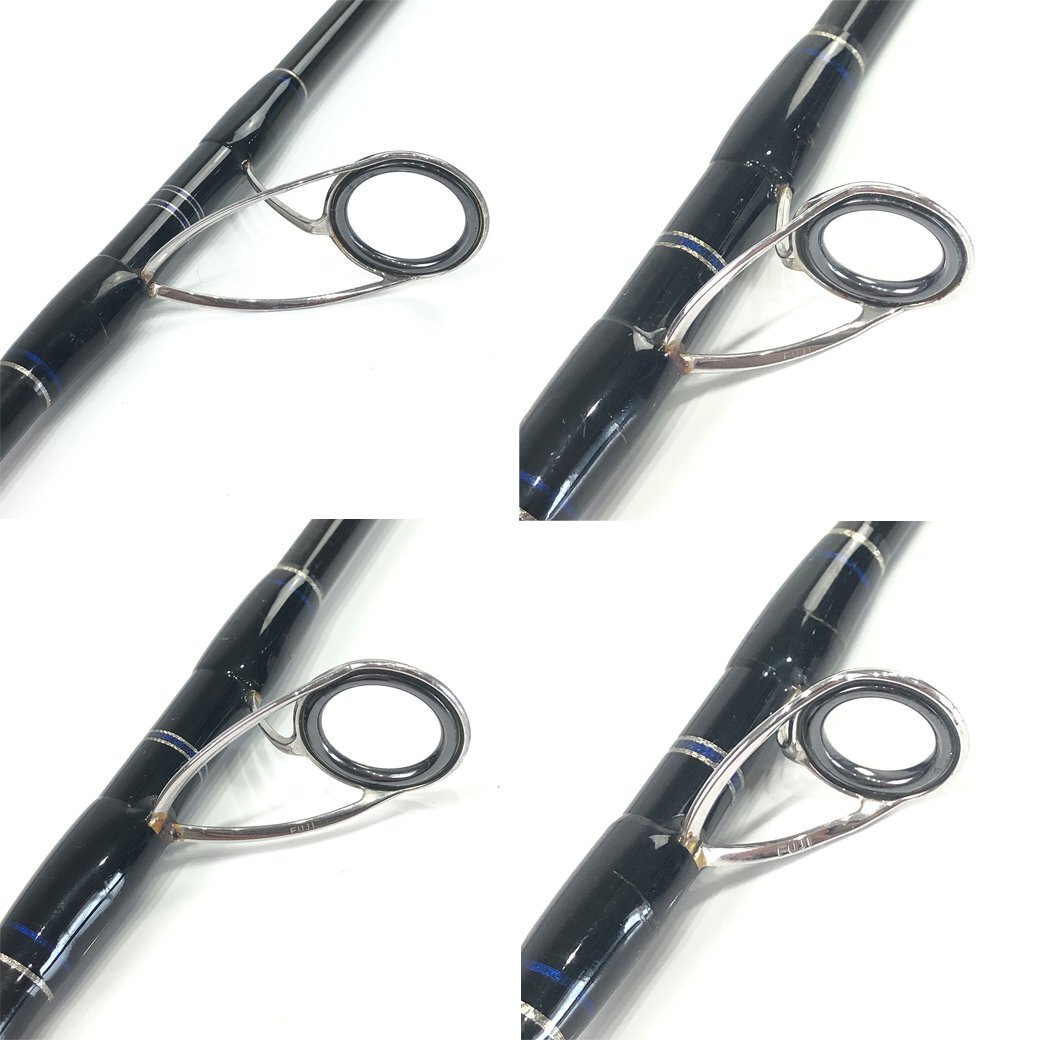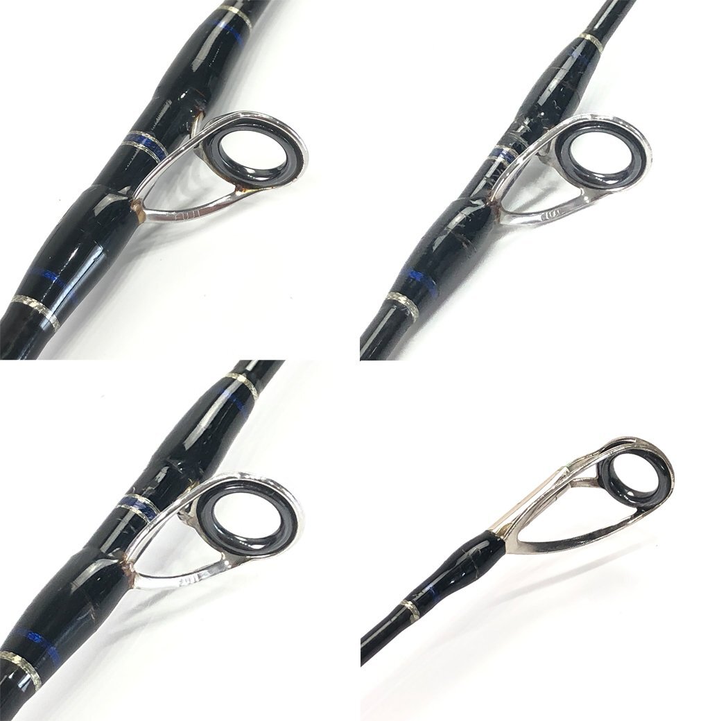 状態 | グリップ周辺にやや汚れ、小キズ等使用感があります。ブランクスにも小キズが多数ありますが、折れに繋がるようなダメージはありません。一部ガイドエポキシにサビによる変色があります。ガイド自体にも小サビと青サビが出ている箇所があります。また、一部エポキシにクラックがありますが、ガイドに歪みやグラつき等はありません。※画像にて外観やカラー、状態などはご確認ください。 |
