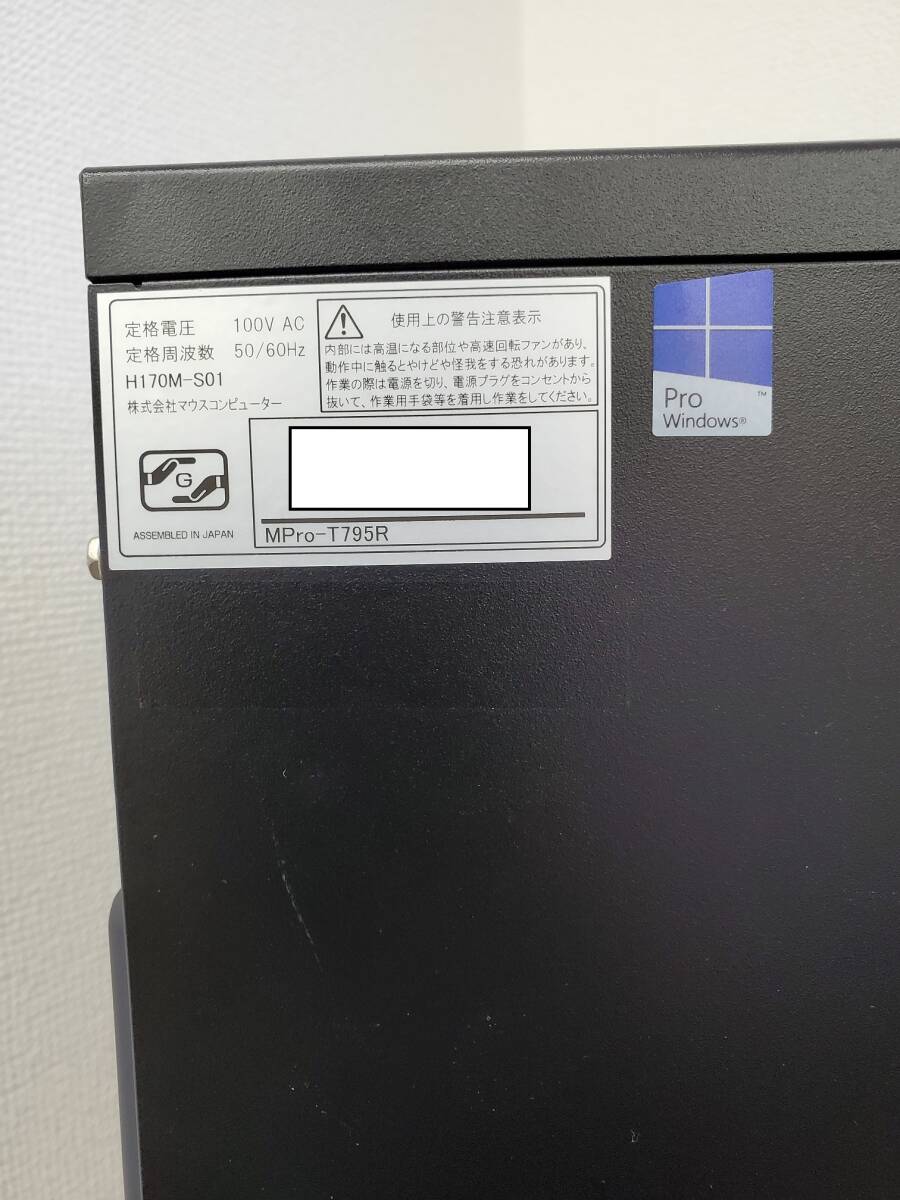 中古品 Mouse computer MPro-T795R Core i5-6500 3.2GHz を出品します。