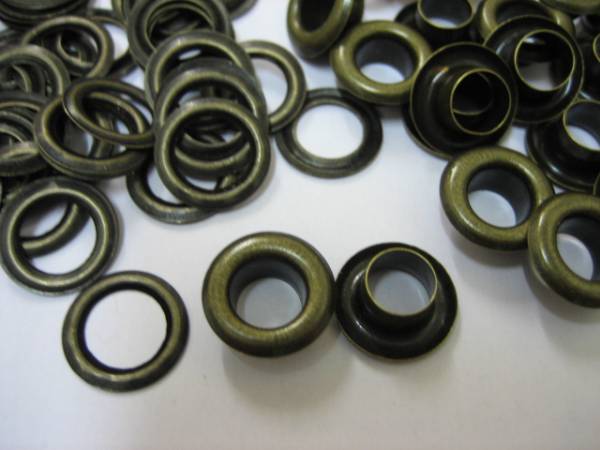 真鍮ハトメ No.20 内径6.5mm 座金付 アンティークゴールド 100組