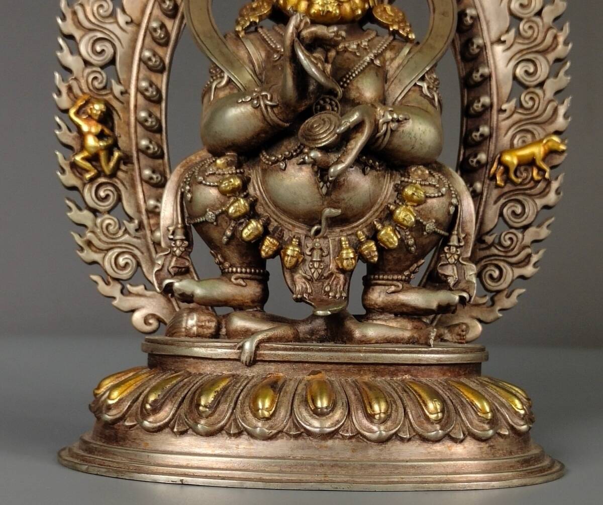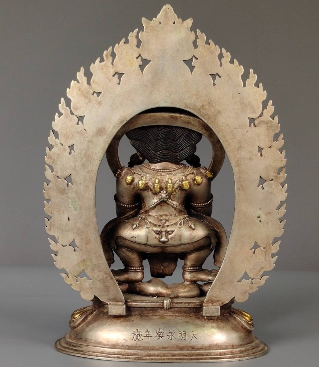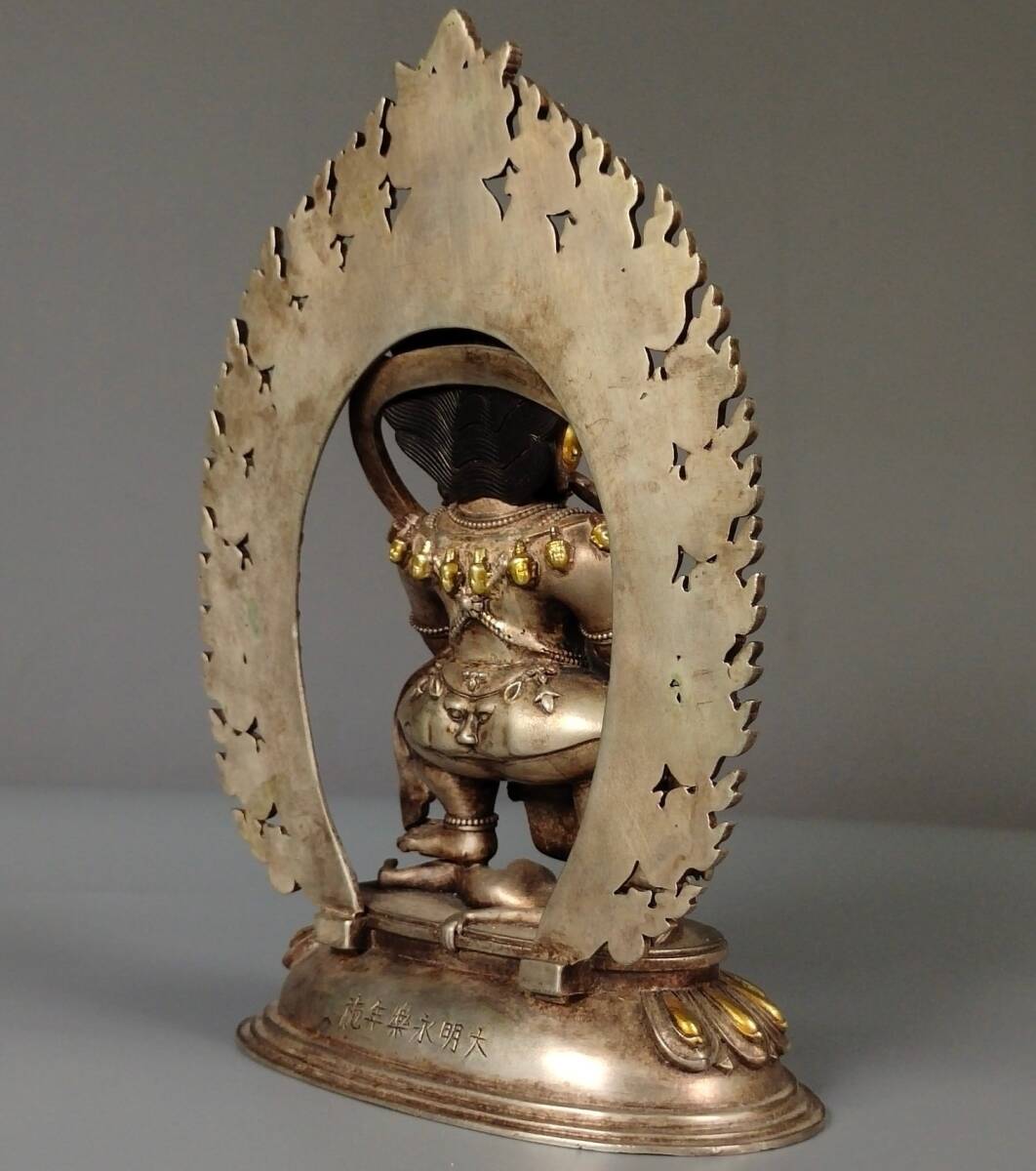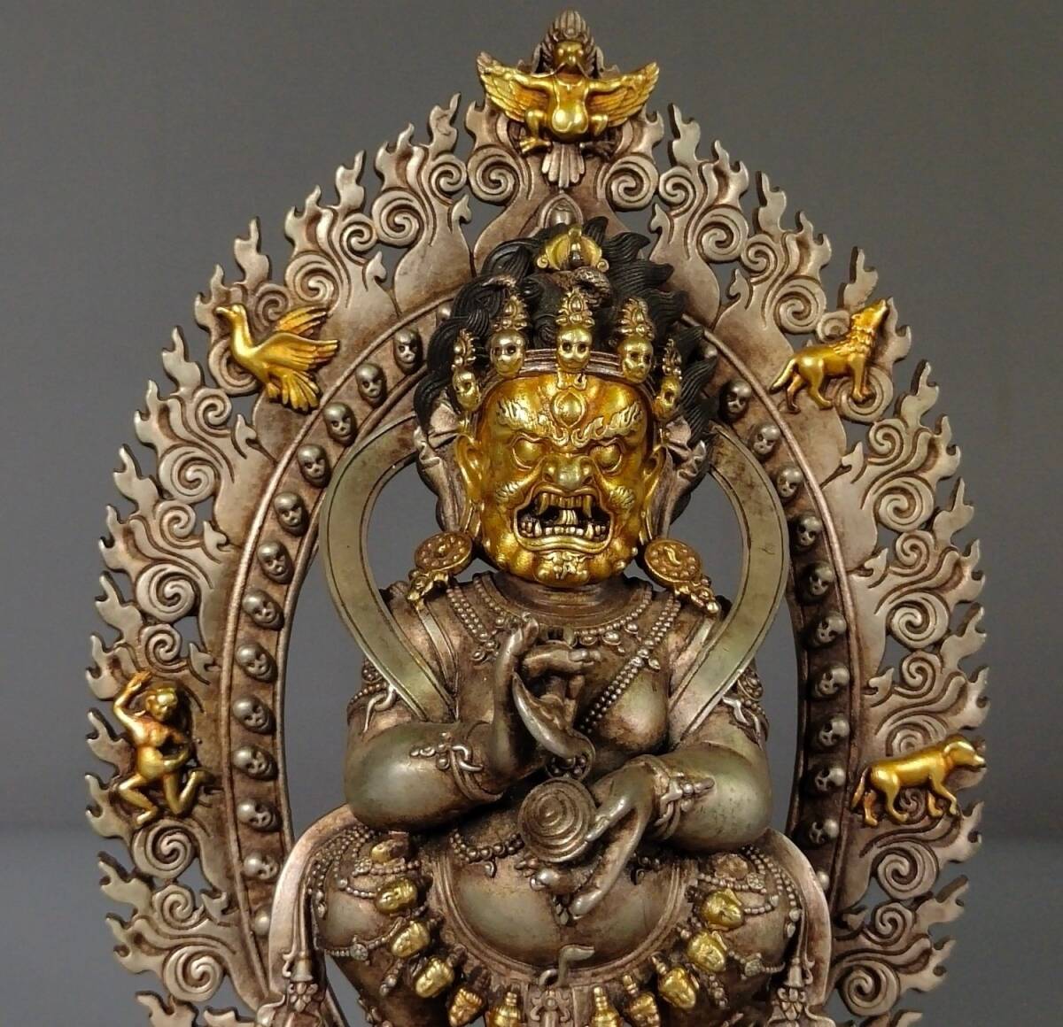 *珍品旧蔵* 大明 永樂年製 紫銅 塗真金真銀 二臂瑪哈ガラガラ供像 仏像 奉納されていた 供養品 極細工 中国古玩 骨董品 古美味 H49