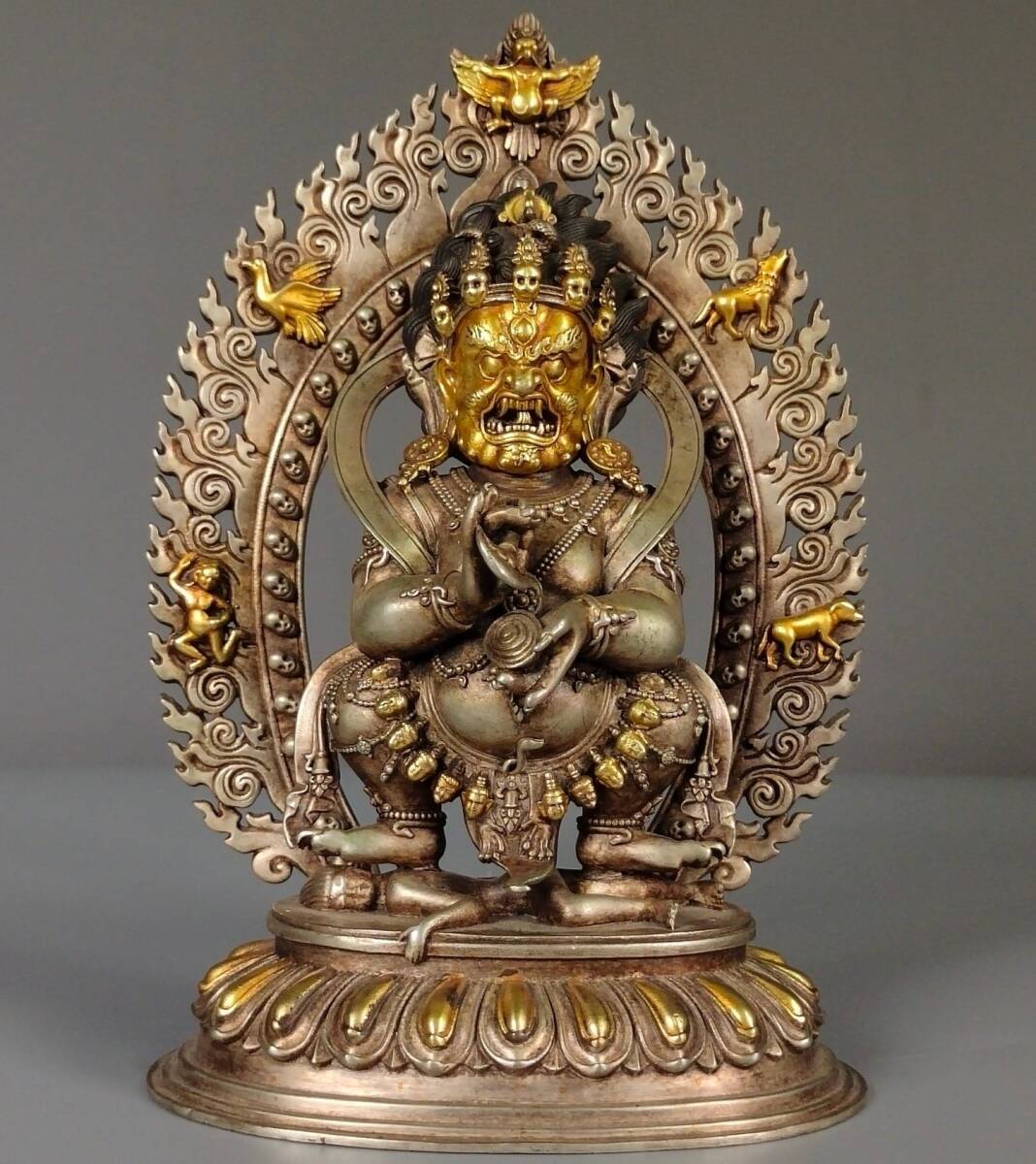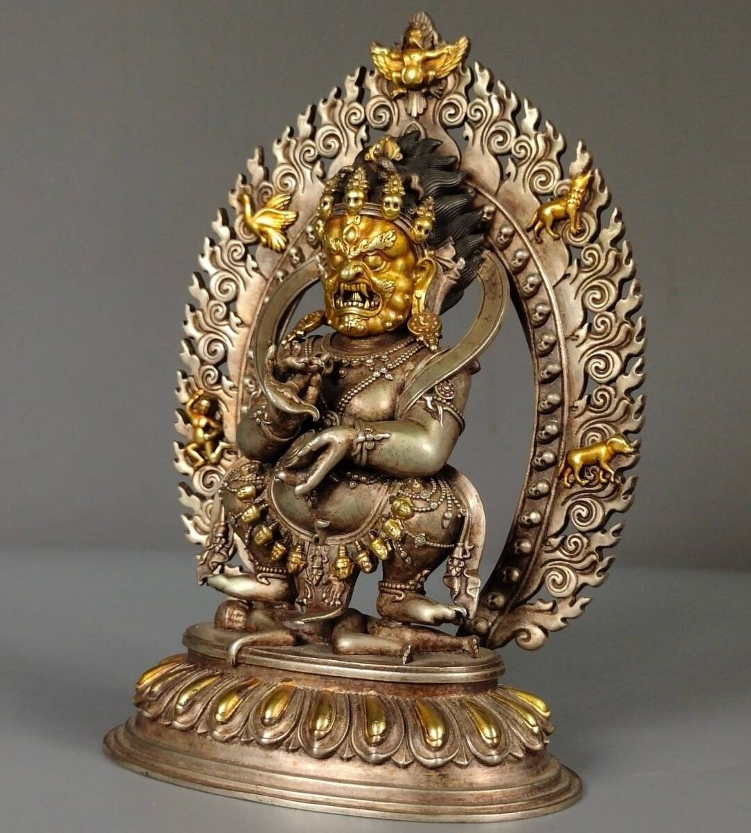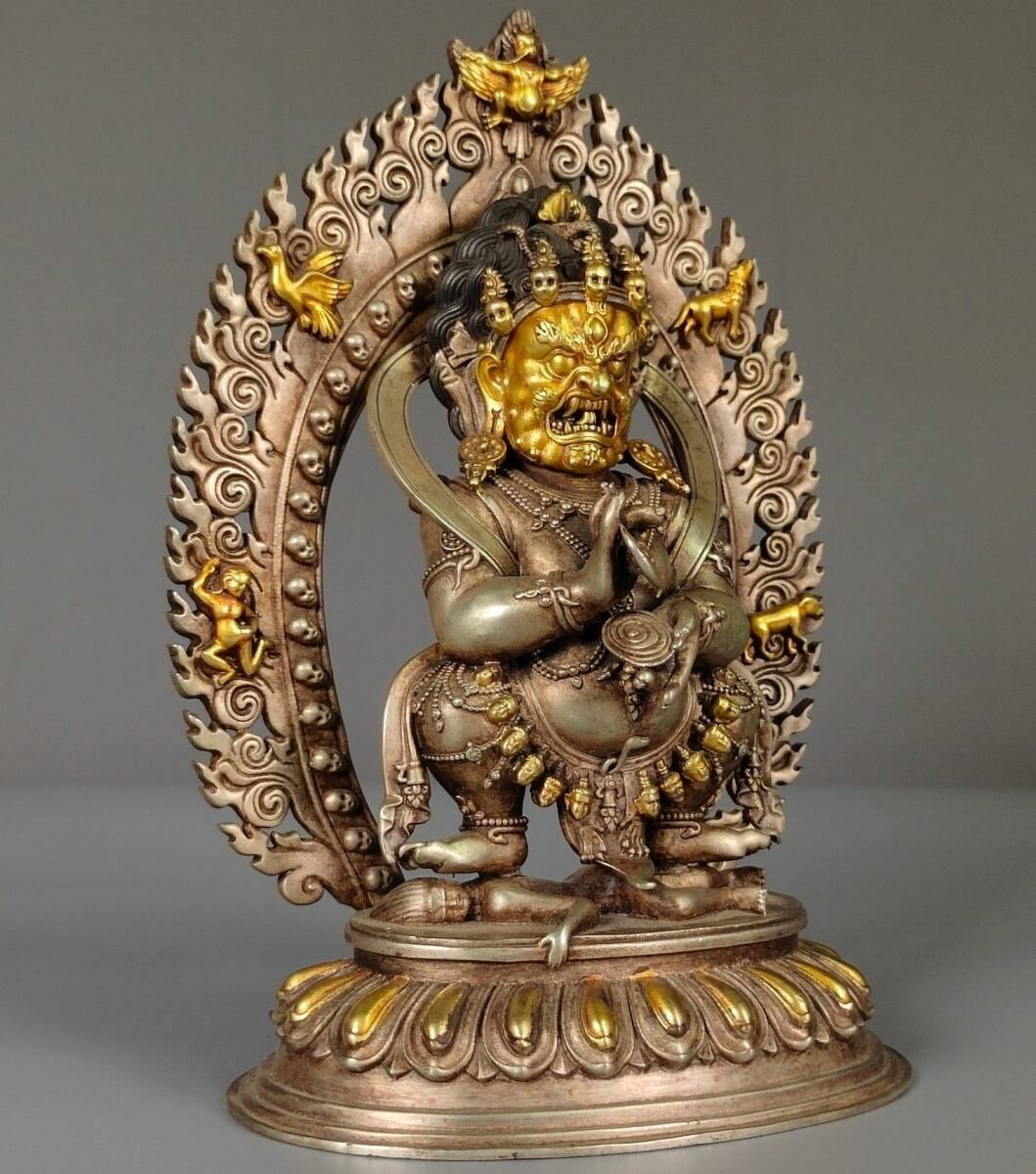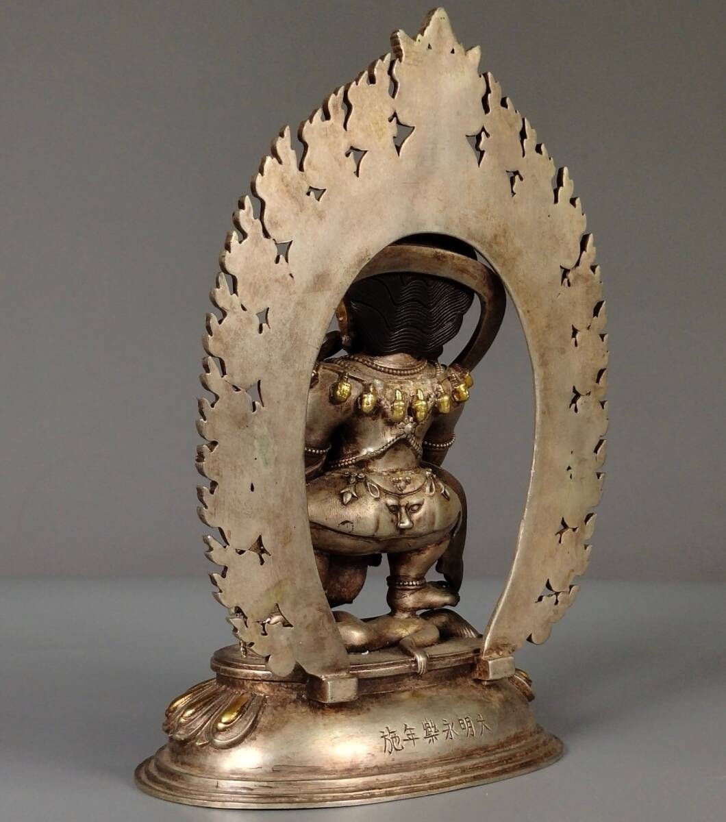 *珍品旧蔵* 大明 永樂年製 紫銅 塗真金真銀 二臂瑪哈ガラガラ供像 仏像 奉納されていた 供養品 極細工 中国古玩 骨董品 古美味 H49