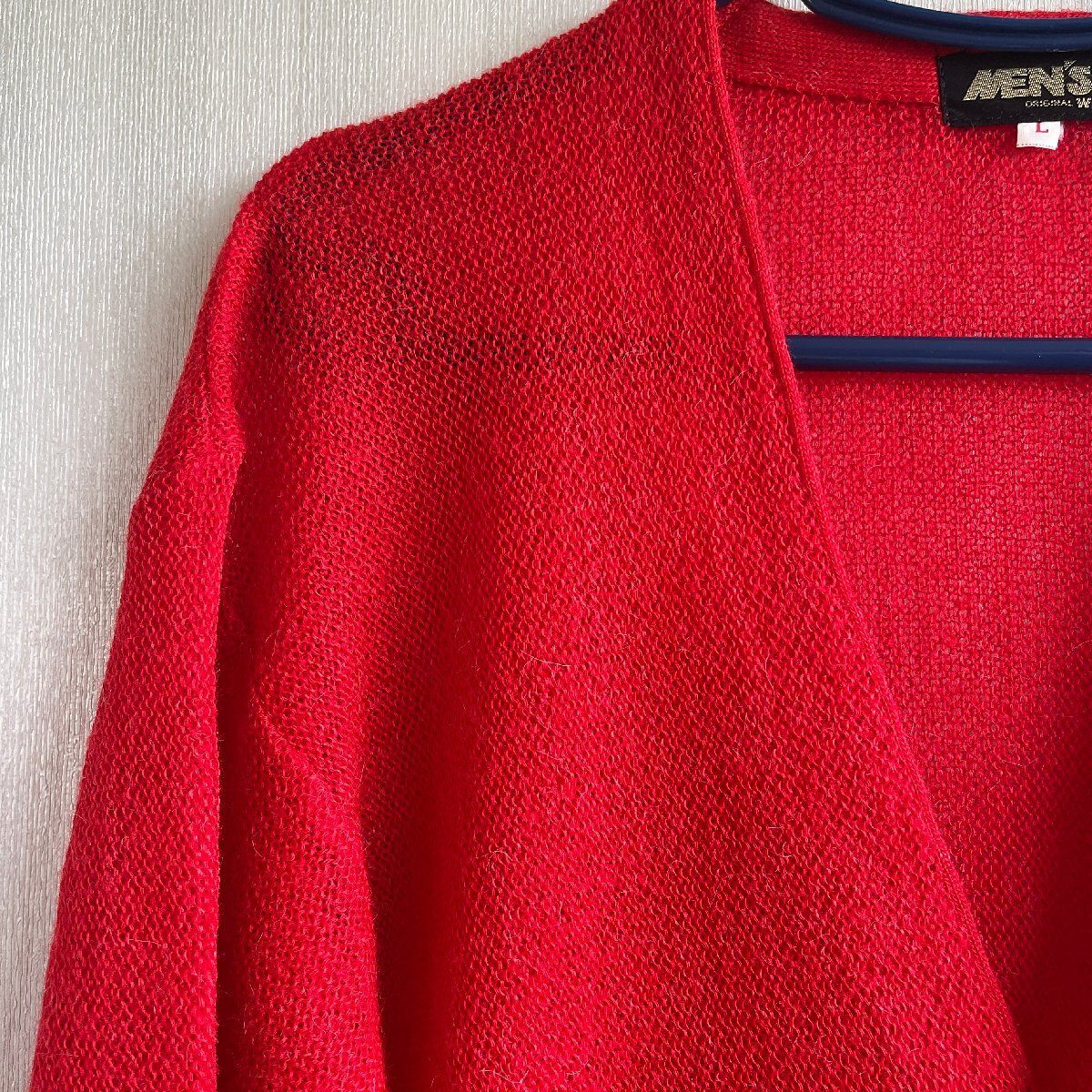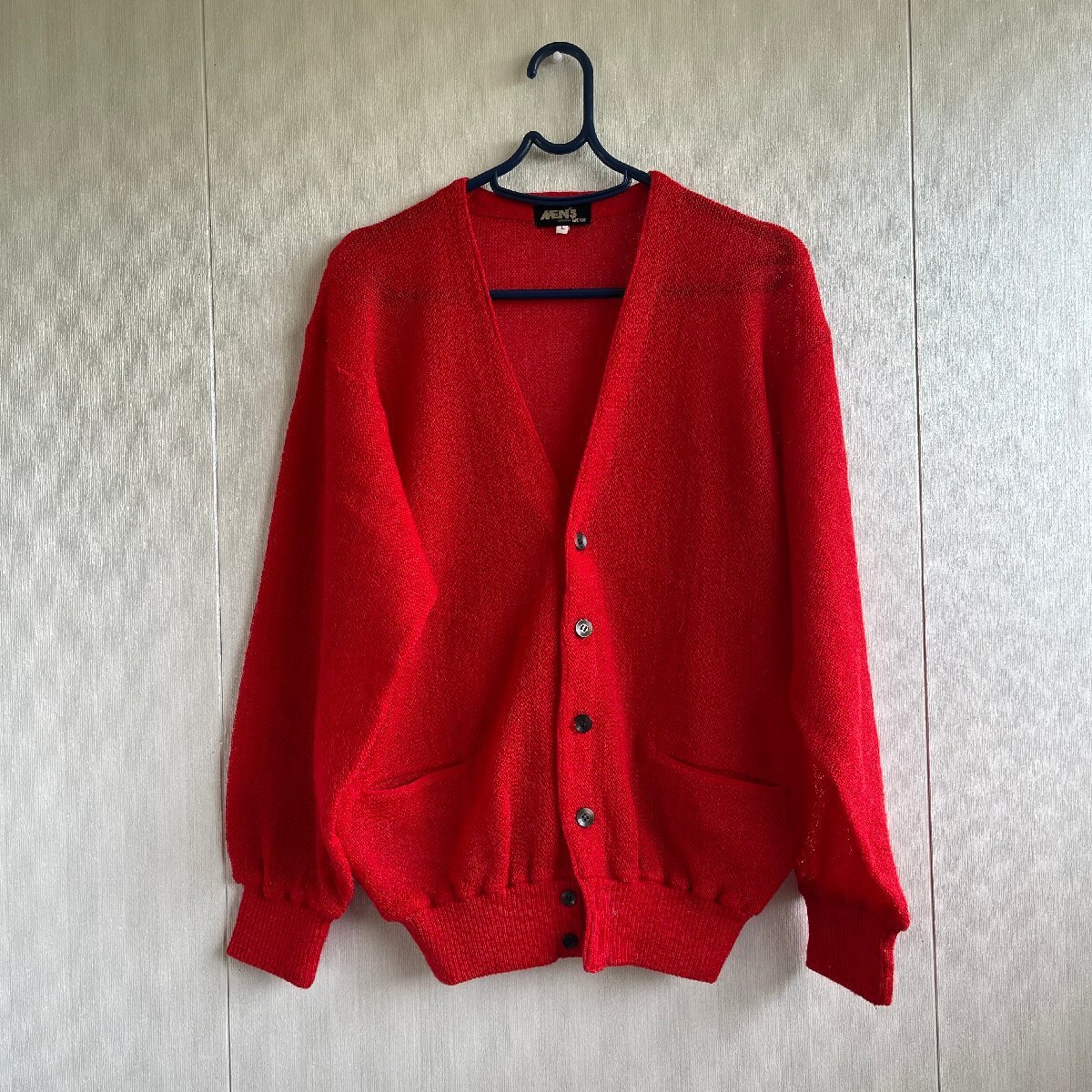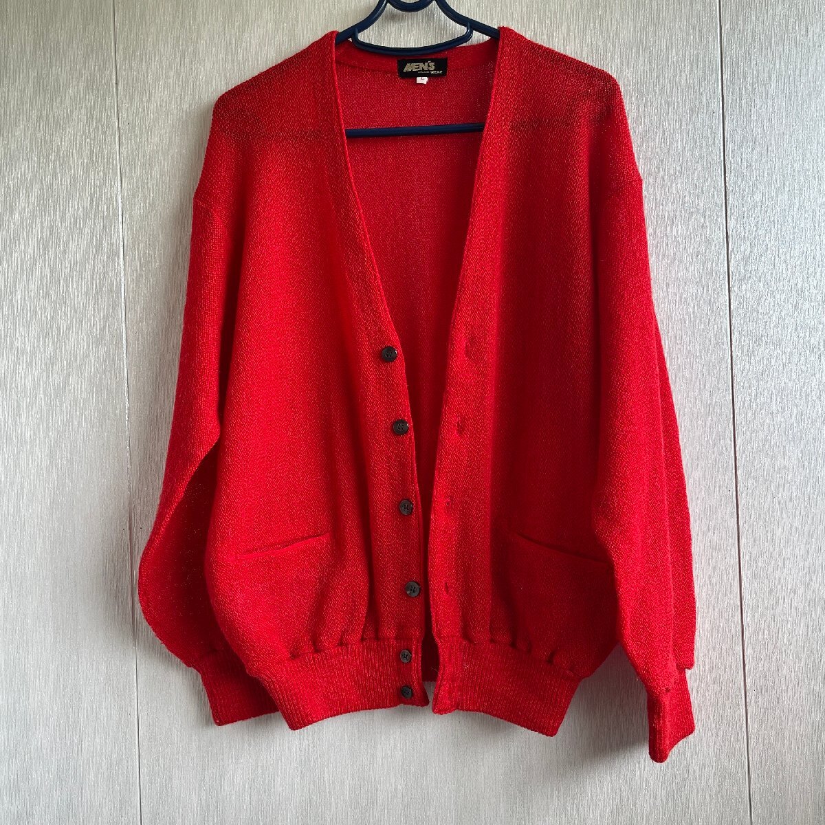 真っ赤なメンズニットカーディガンです。