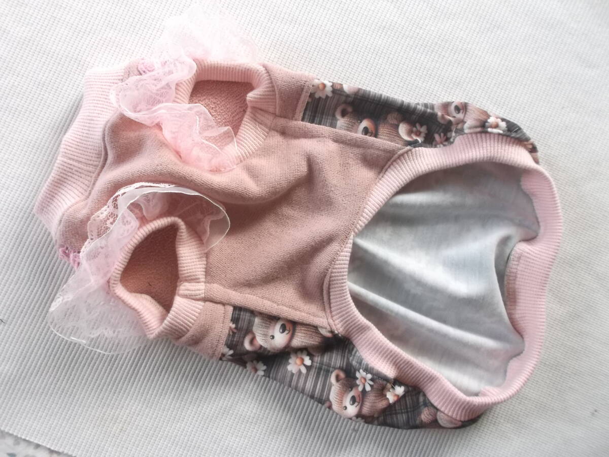サーモンピンクのミニ裏毛と立体くまちゃん柄を切り替えて