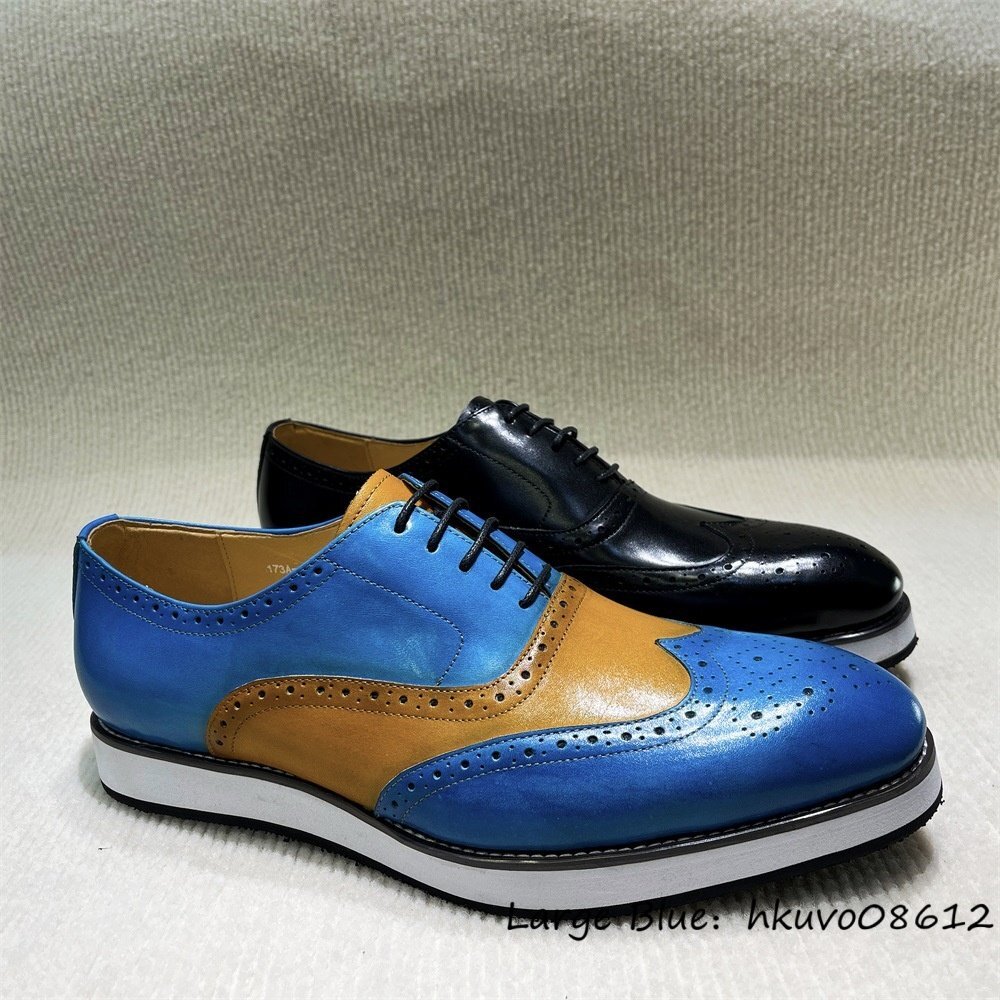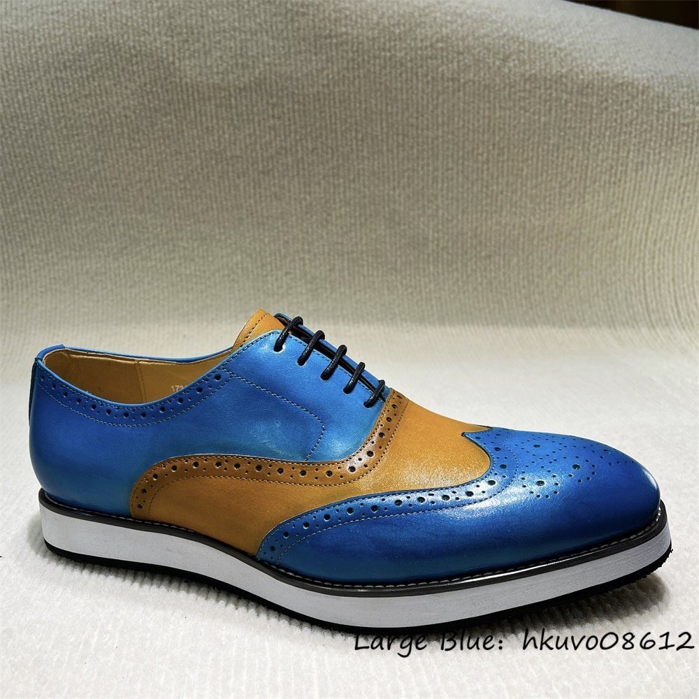 入手困難■ビジネスシューズ 本革 メンズシューズ 職人手塗り上げ 切替 レザーシューズ ローファー スリッポン 超希少牛革 ブルー 25.0cm
