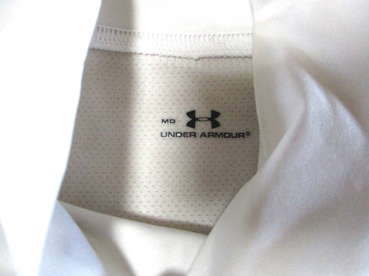 USED・アンダーアーマー・半袖インナーシャツ・白色・サイズMD・着丈60,5㎝・身幅脇下38,5㎝・目立った汚れなどは有りませんが、USED品にご理解頂ける方の入札お願い致します。ゆうパケットミニ180円で発送させて頂きます。