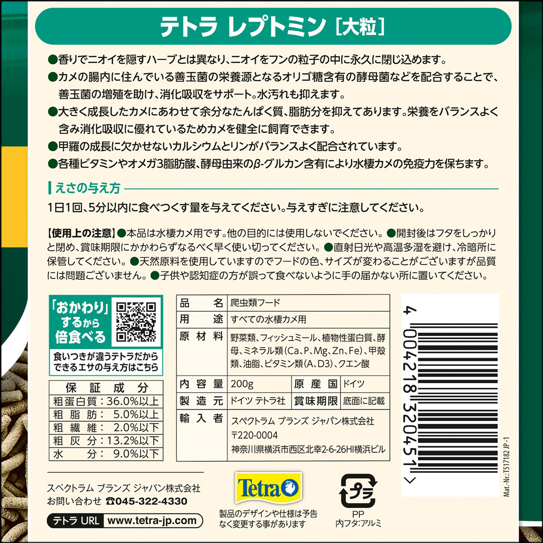 ● レプトミン大粒200g テトラ(Tetra) 水棲ガメ用浮上性フード 新品 消費税0円 ●