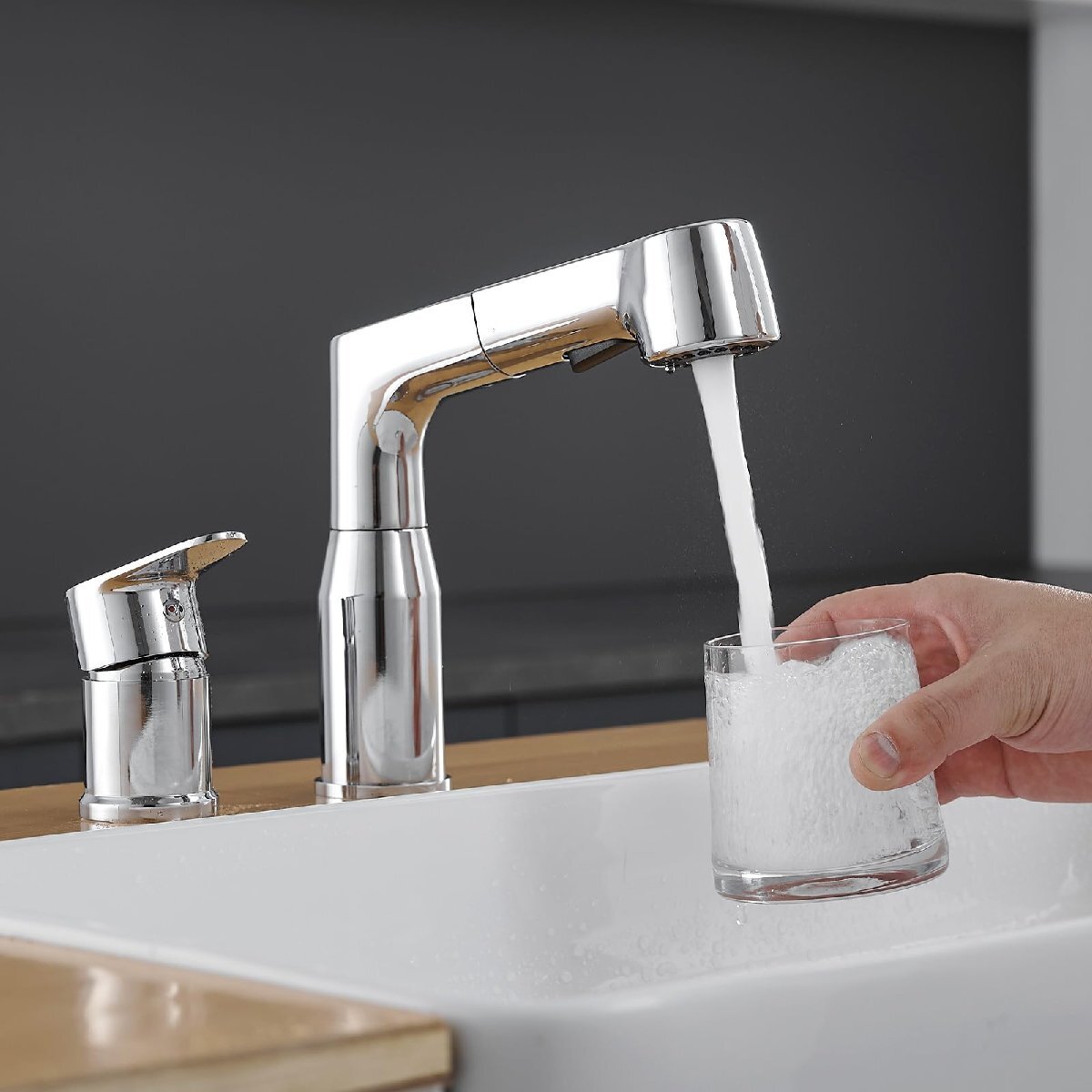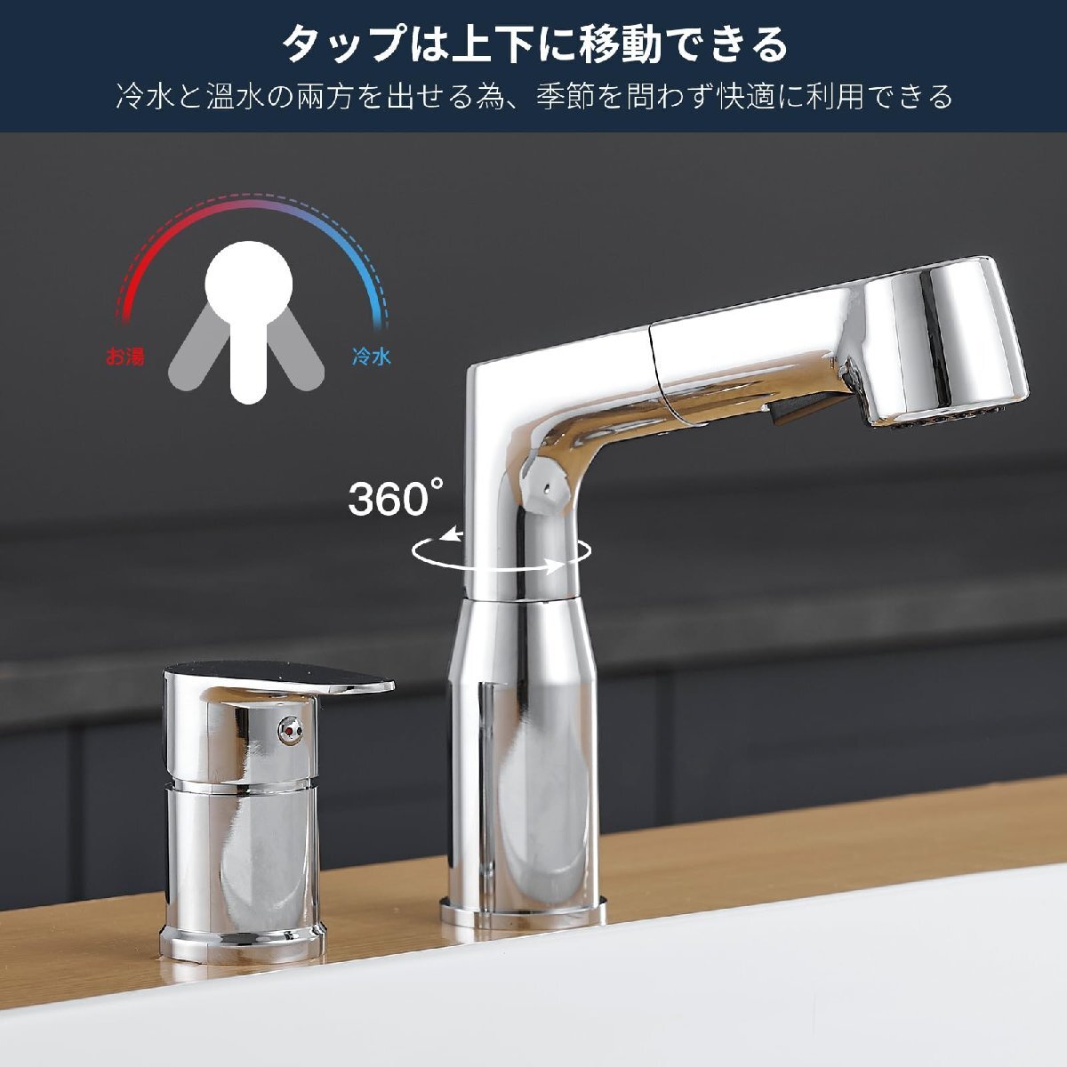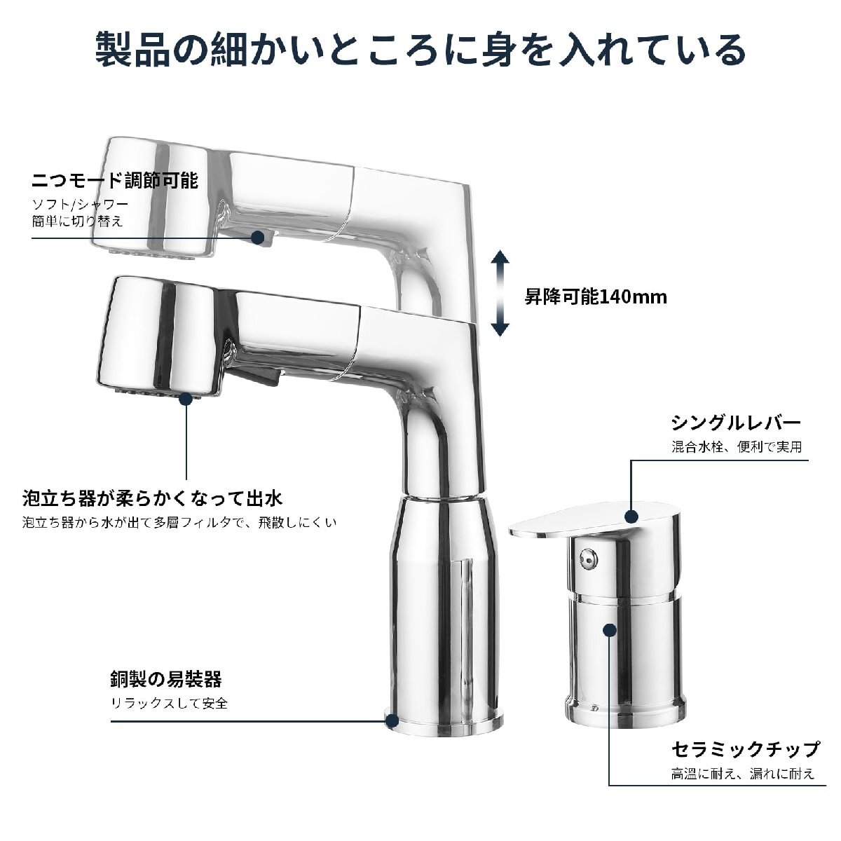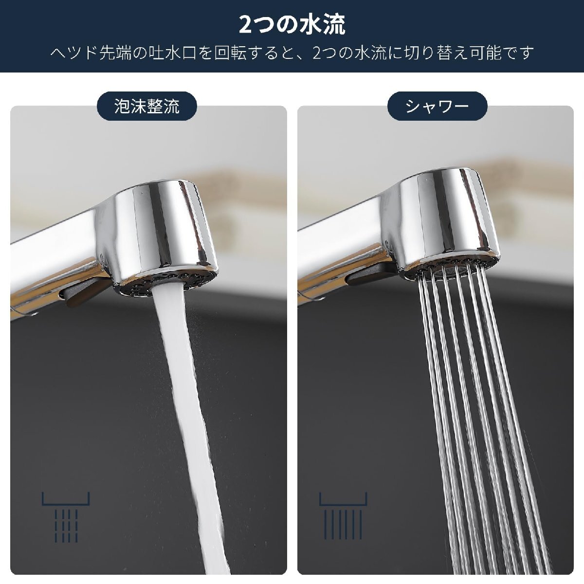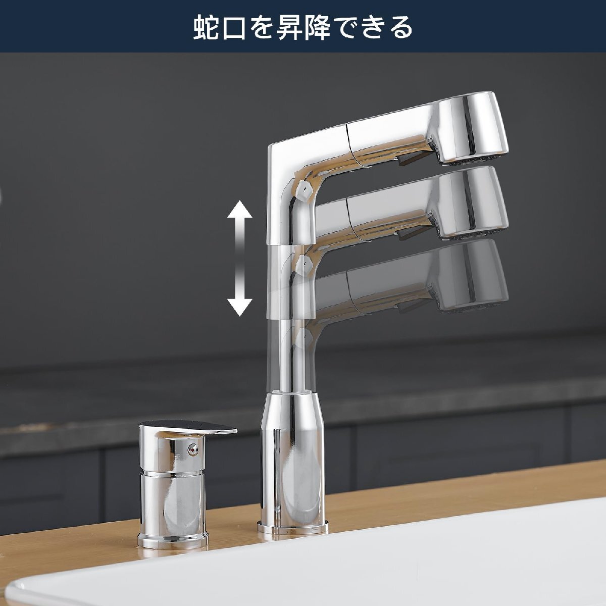 即決価格★ クロムメッキ 吐水口昇降 洗面器用 混合水栓 洗面水栓 2つの水流モード ホース引出式シングルレバー混合水栓