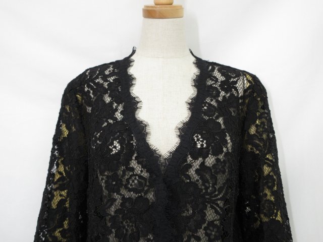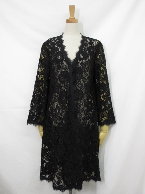 未使用【Super Beauty スーパービューティ】ナイロン×コットン 総レース ロングカーディガン (レディース) size42 ブラック ◇17LT5534◇