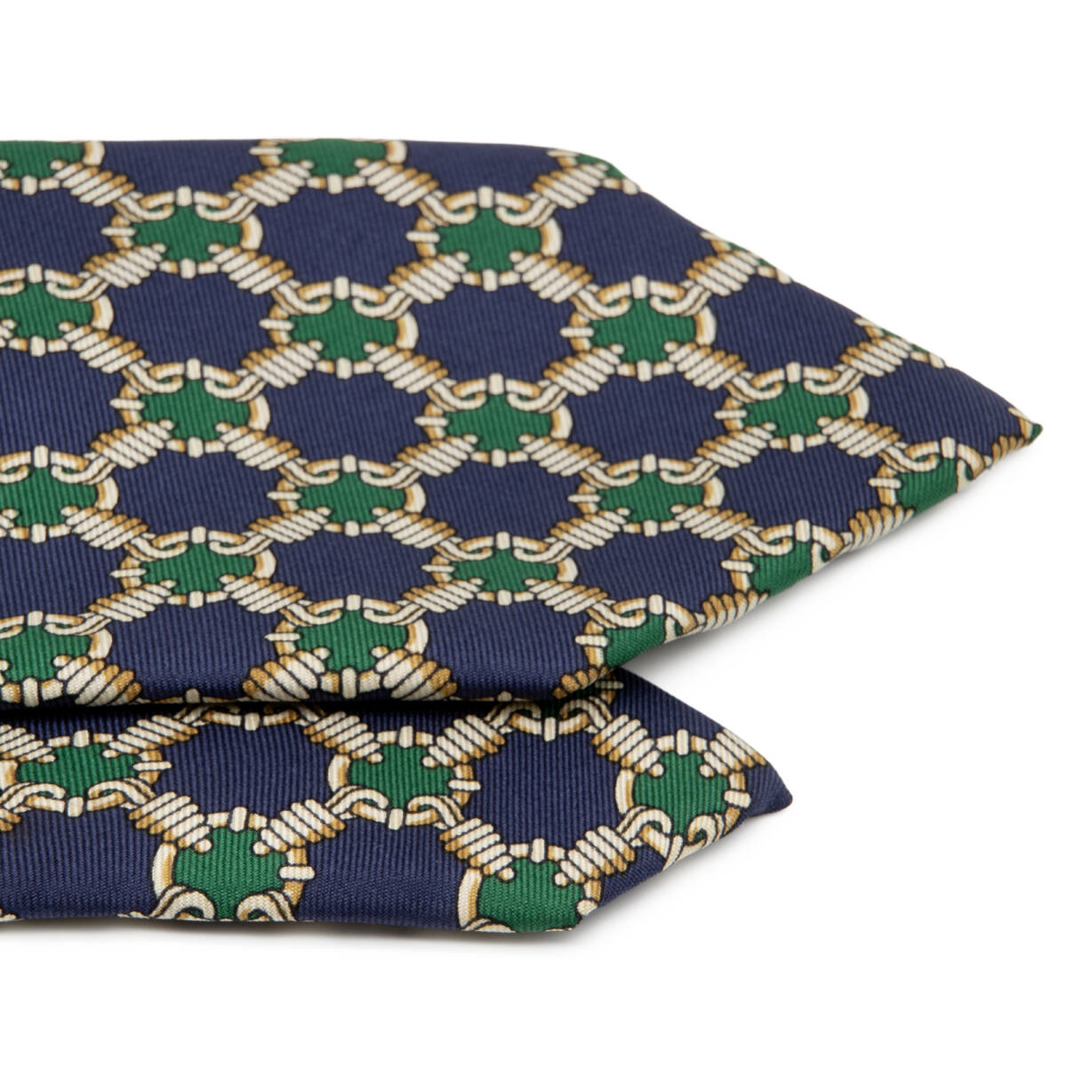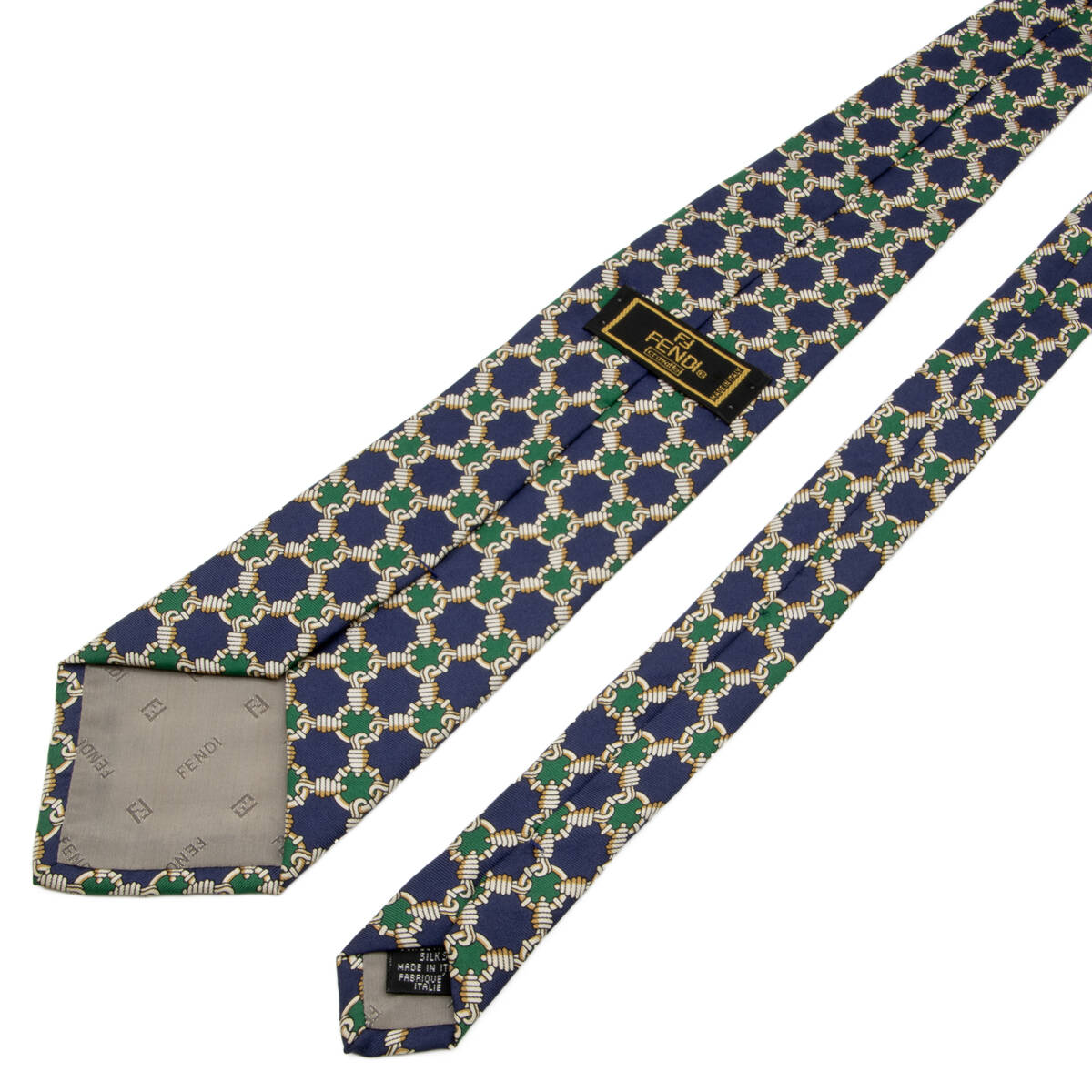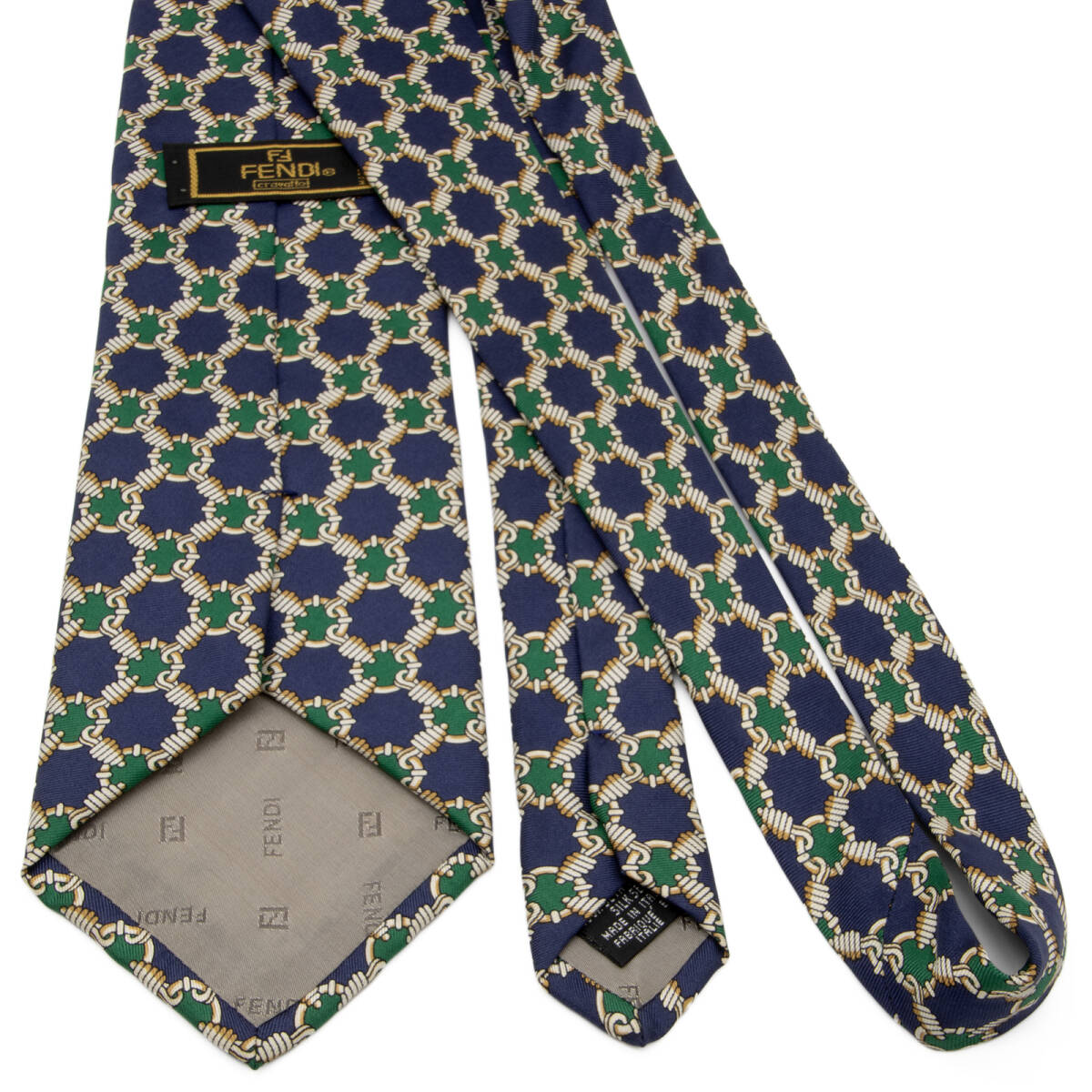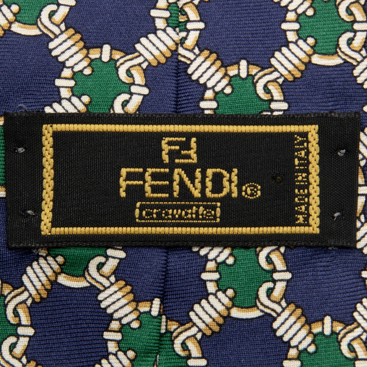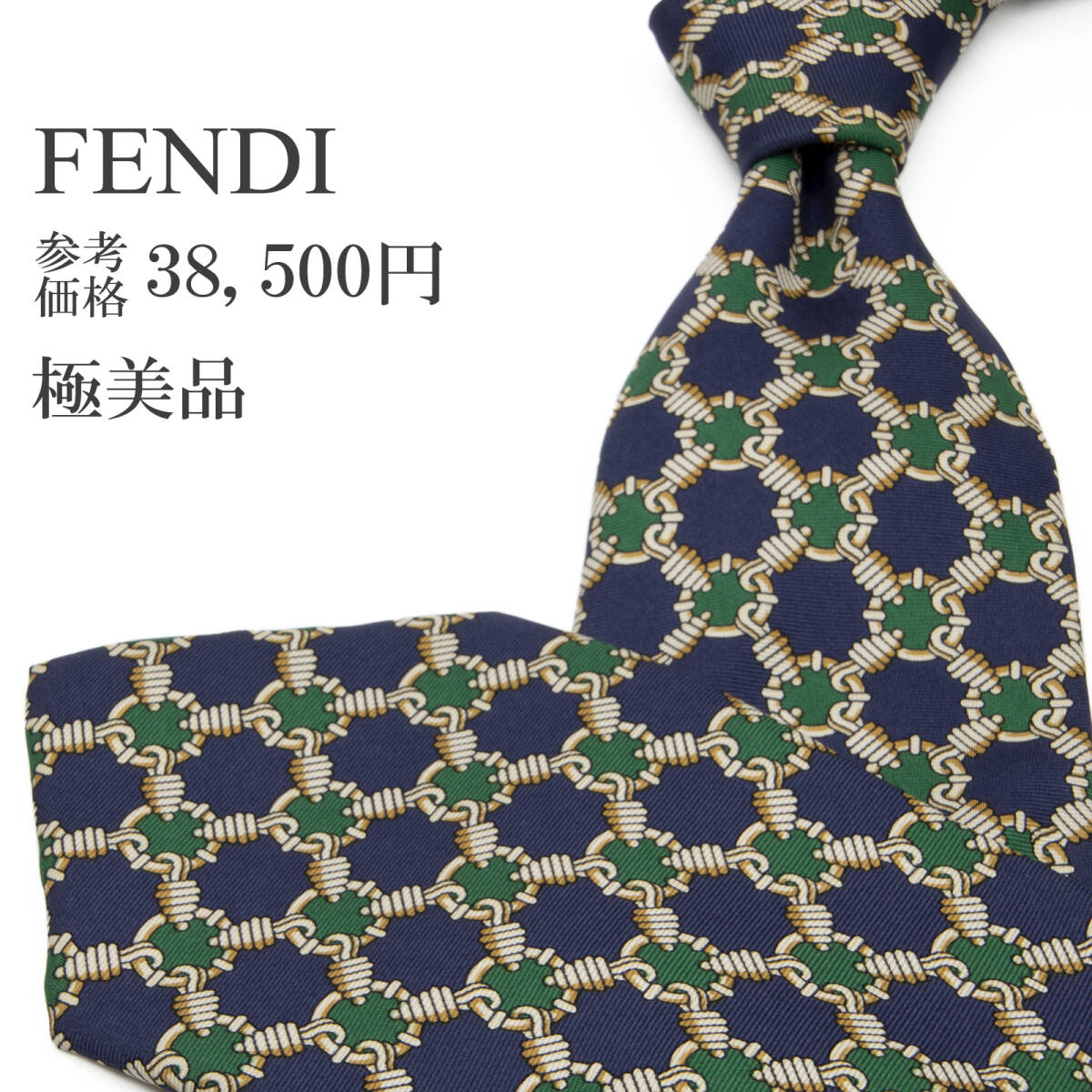 送料無料 フェンディ ネクタイ レギュラータイ シルク ネイビーブルー ベージュ 緑 グリーン 総柄 Y2K 90s 00s ブランド 珍しい 綺麗 P440