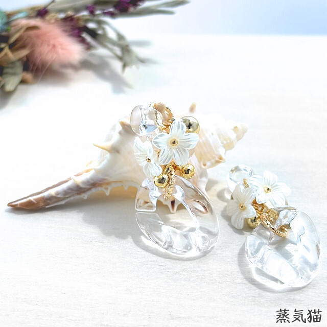 お手持ちの金具をつければすぐ出来上がるので、とても便利です。ピアス、イヤリング、ネックレス、バッグチャーム、海夏系等、アクセサリーパーツとして。