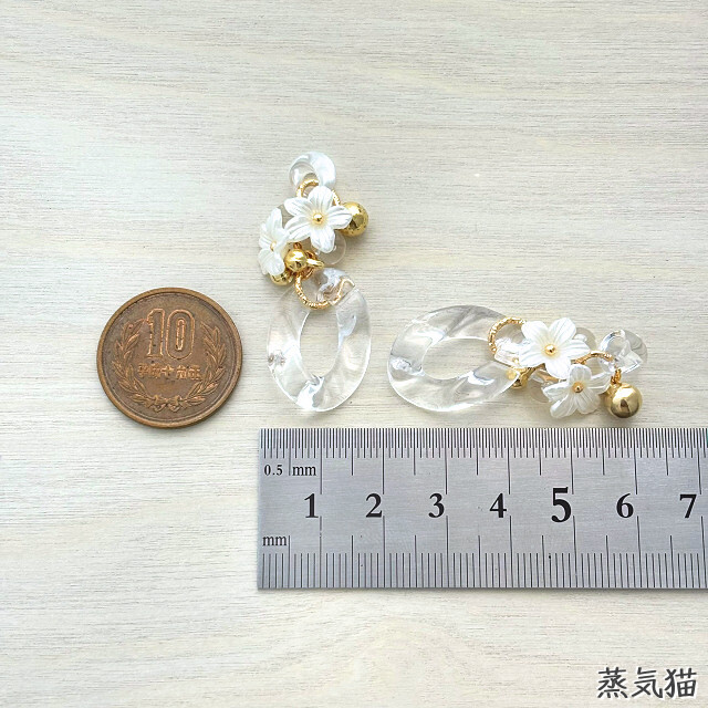 仕様: 1点=2個入り(1ペア)、アクリル、メタル、約42mm x 17mm前後